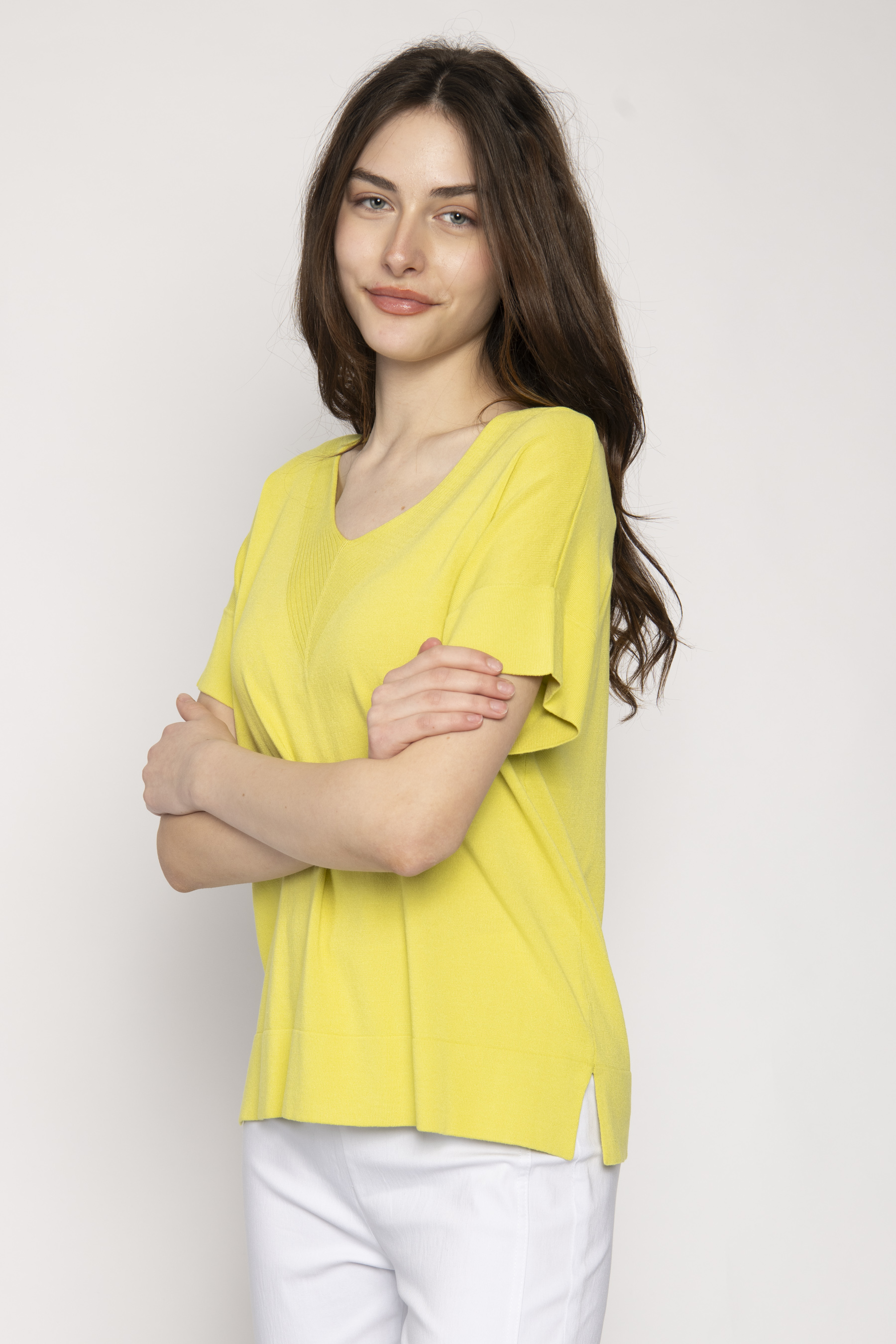 GROWN ON SHORT SLEEVE V NECK KNIT