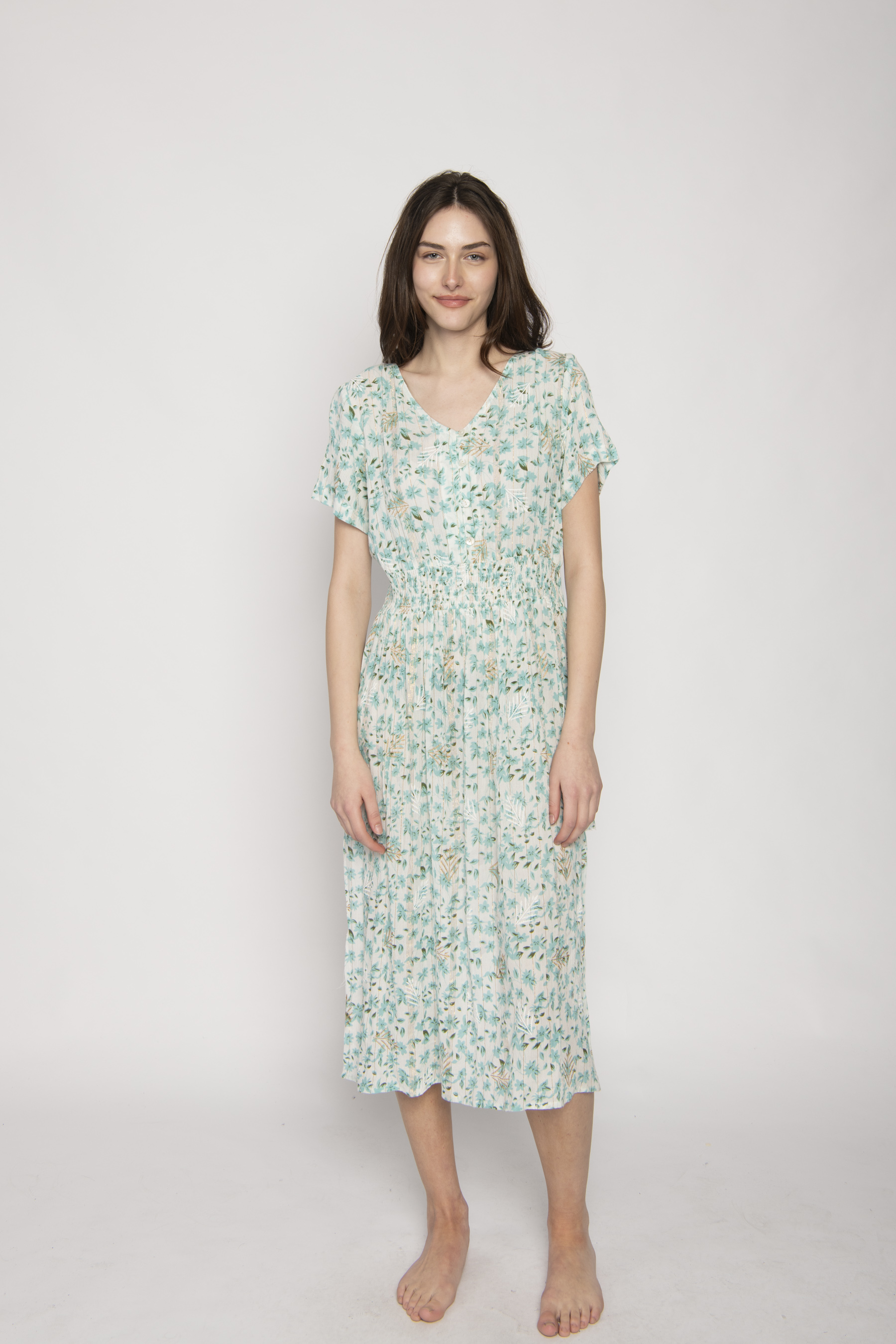 AQUA WHITE AND GOLD STRIPE BUTTON FRONT MIDI DRESS