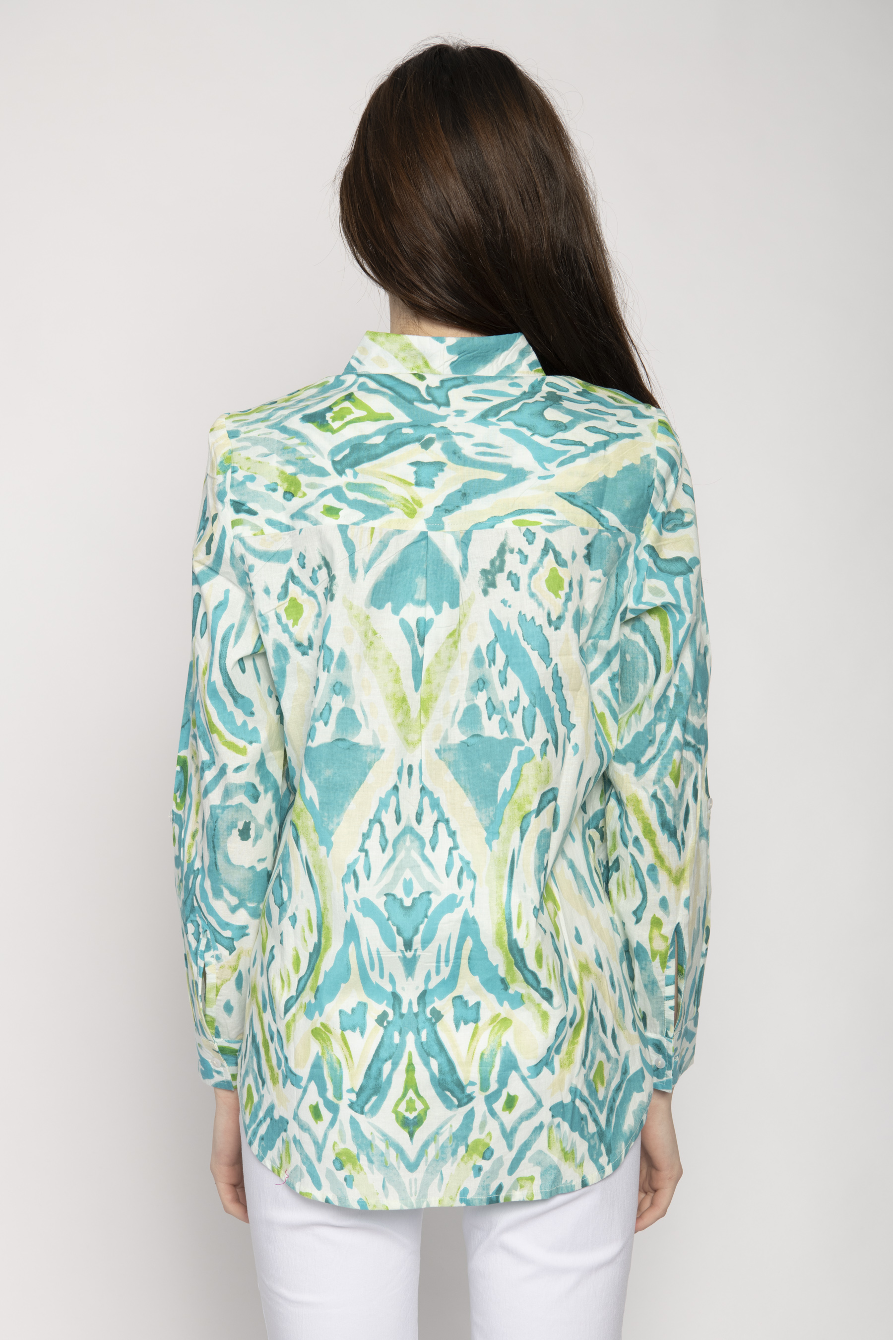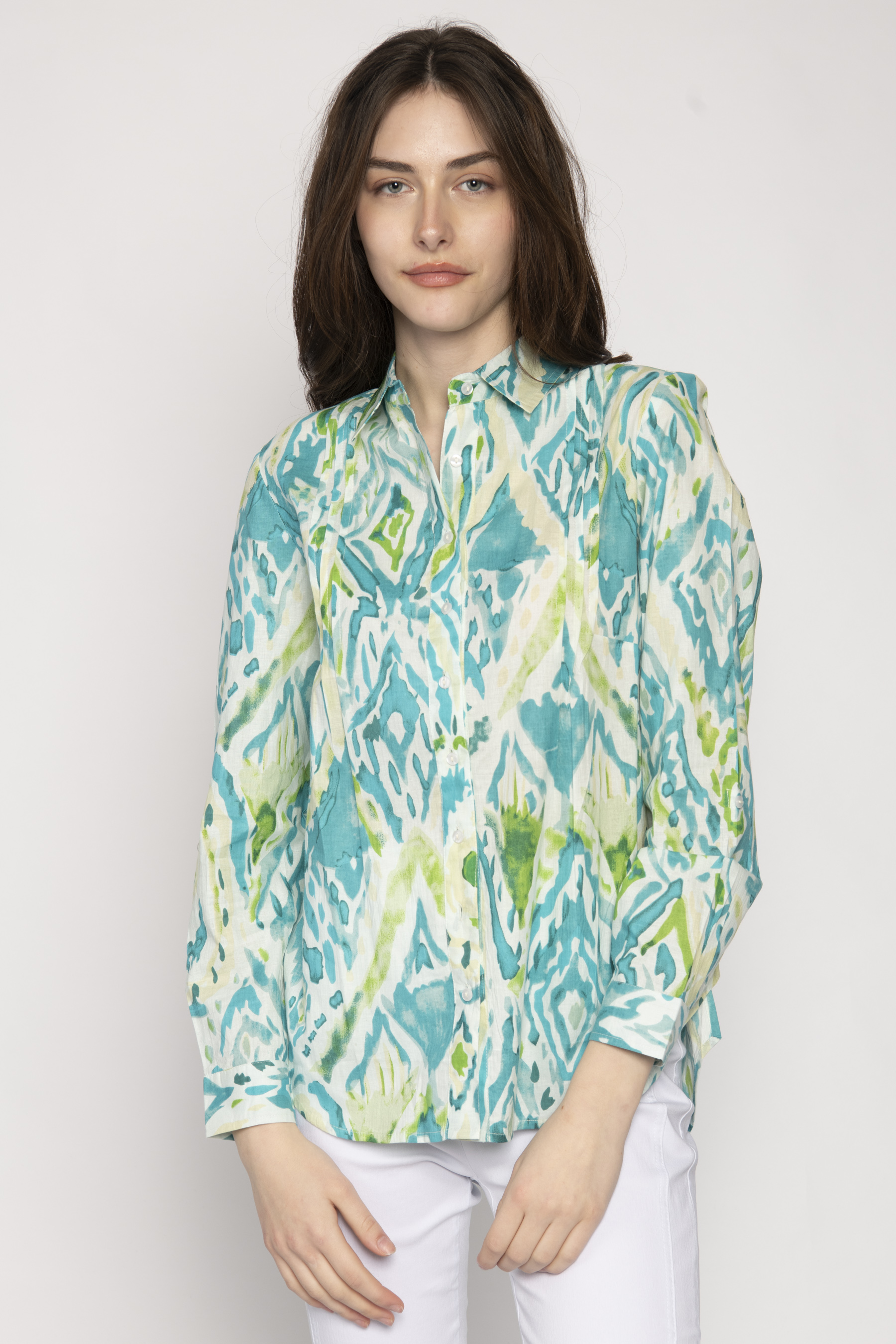 PRINTED BUTTON THROUGH BLOUSE, TAB AT SLEEVES