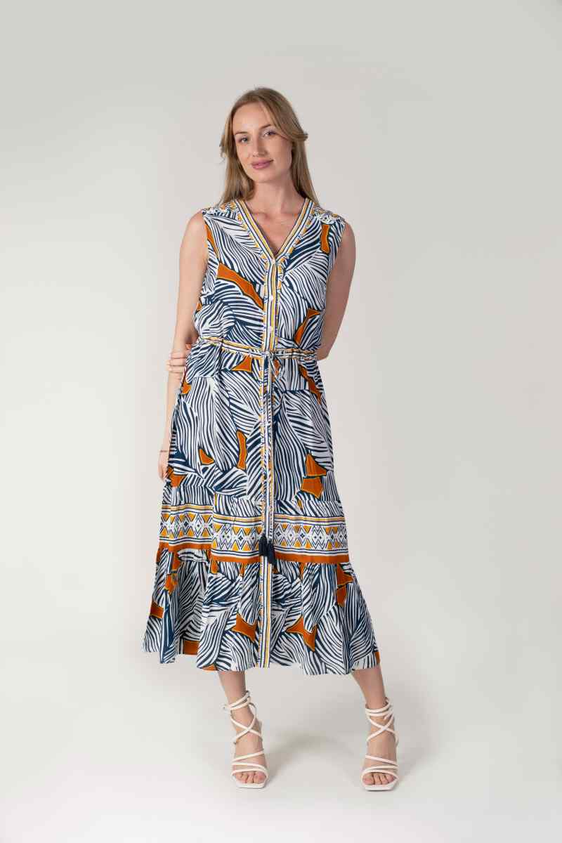 NAVY AND ORANGE BOLD ABSTRACT DRESS
