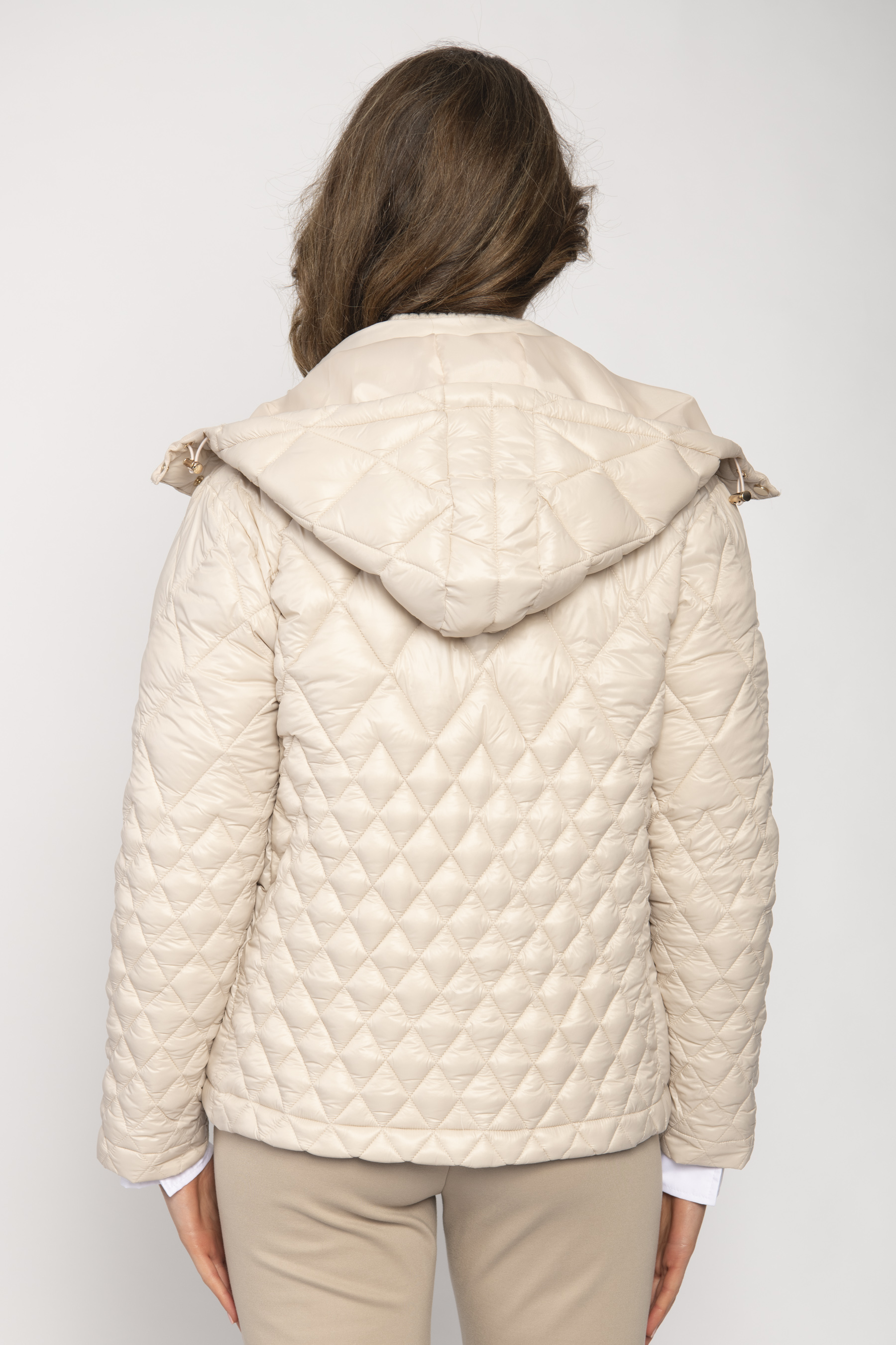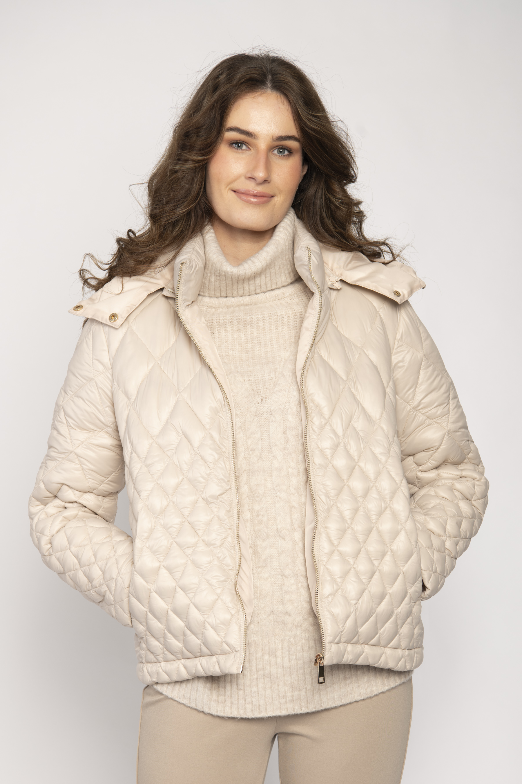 SHORT PADDED JACKET WITH HOOD DIAMOND PATTERN , SIDE POCKETS
