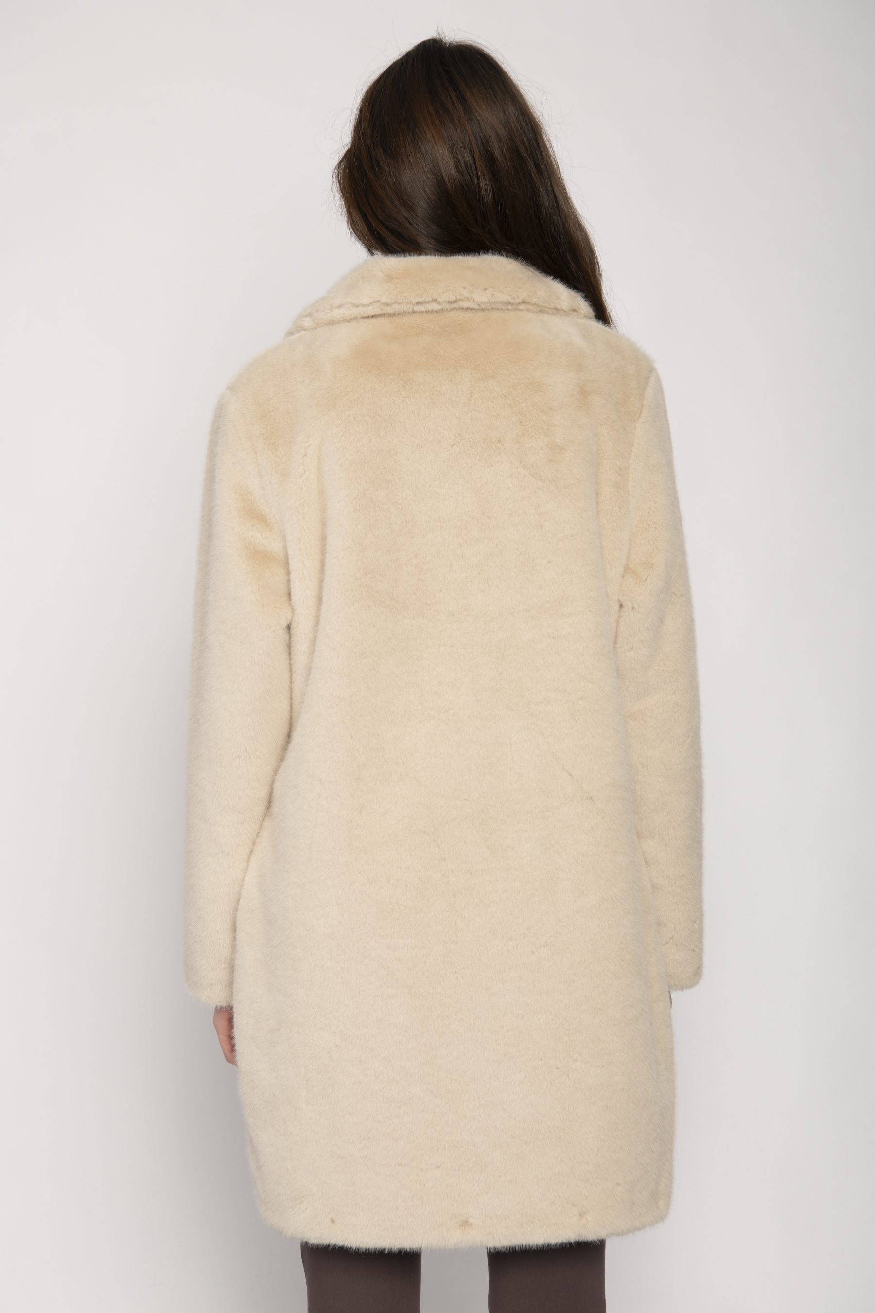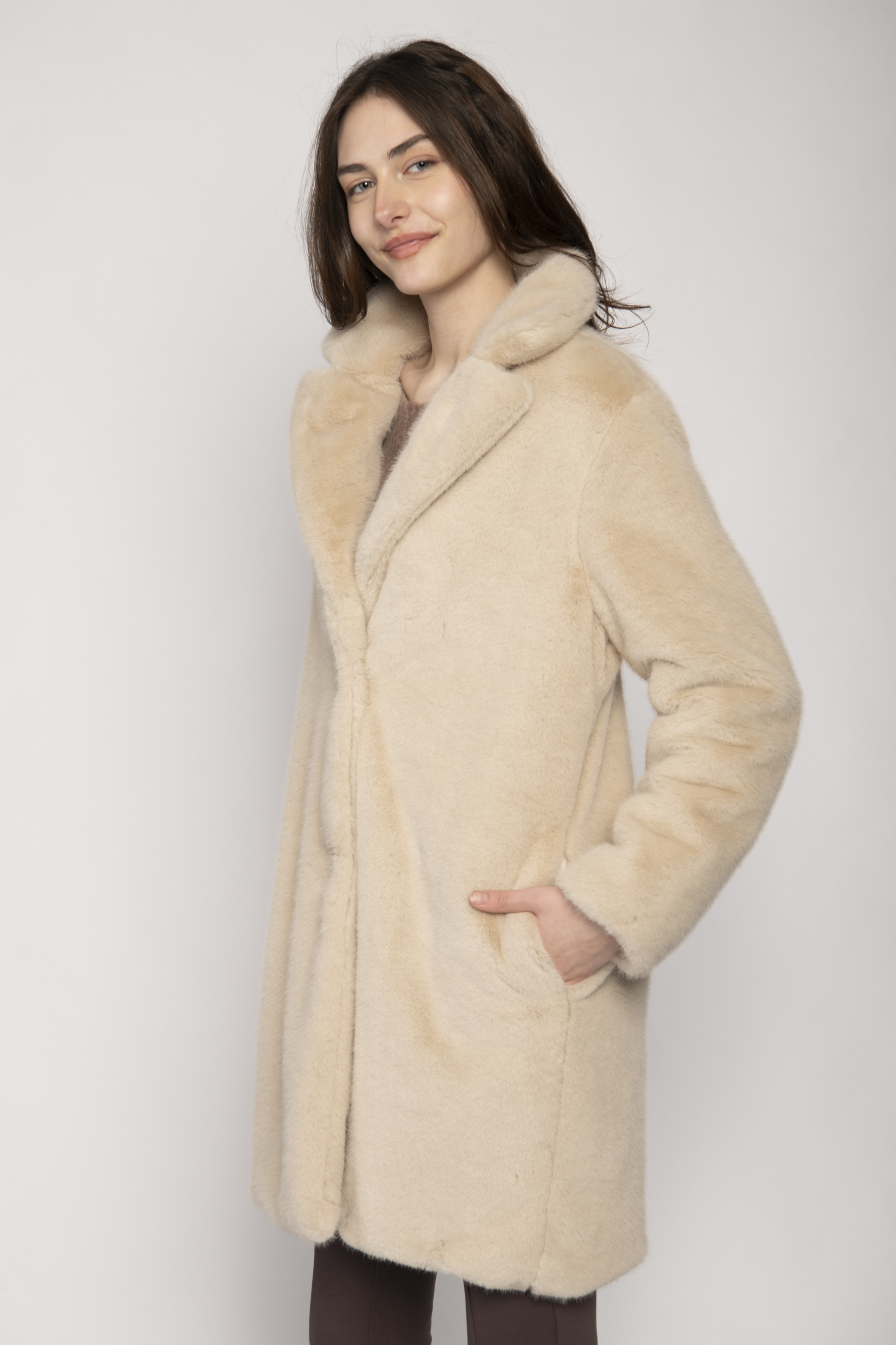 LONG FAUX FUR COAT WITH COLLAR & LAPEL, SIDE PKT, 2 BUTTON