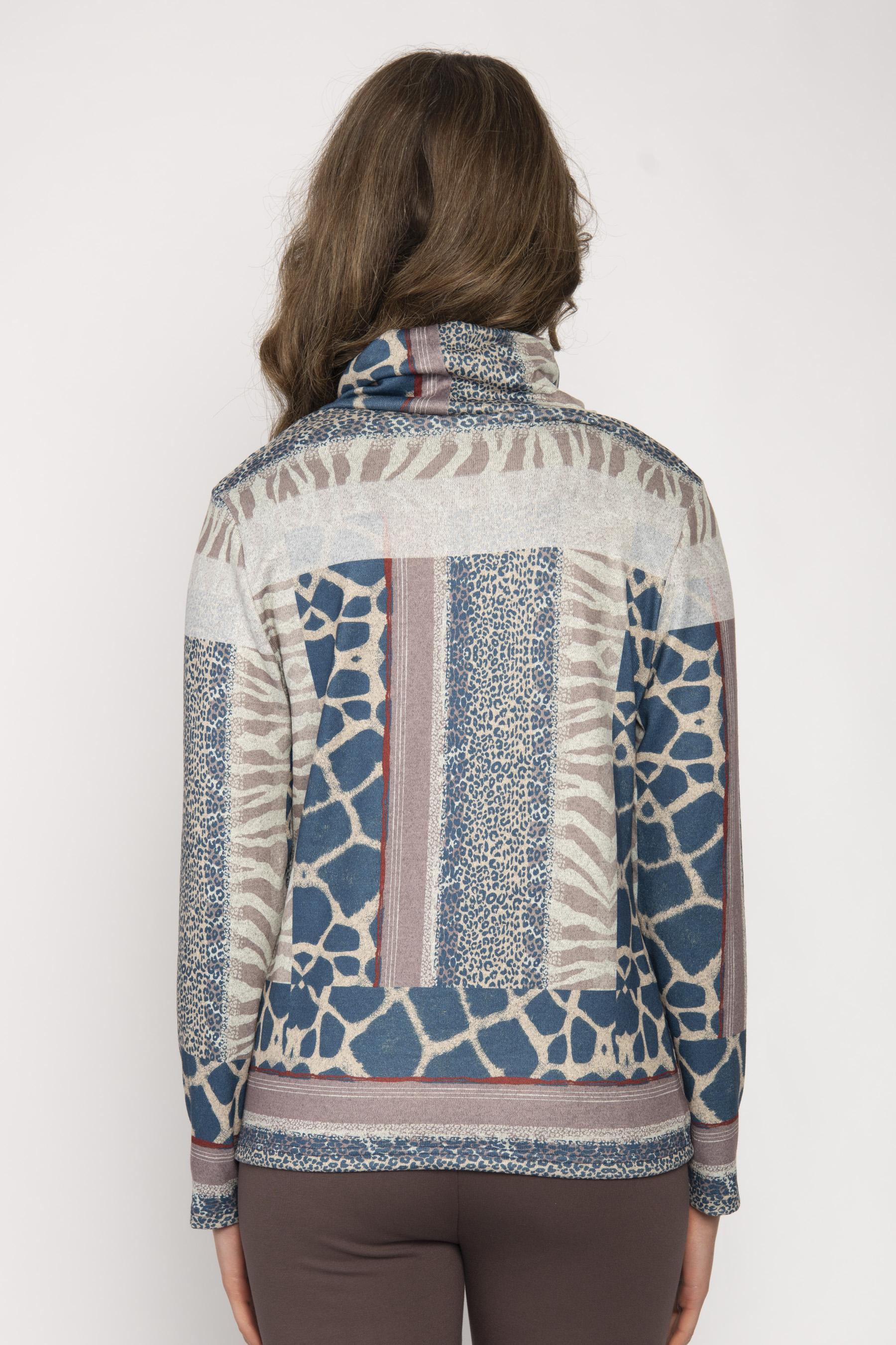 COWL NECK LONG SLEEVE ANIMAL VERTICAL STRIPE PRINT TOP WITH BORDER PRINT