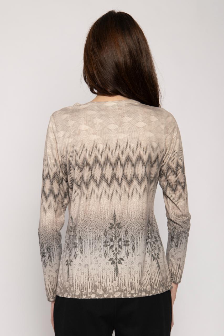 LONG SLEEVE SCOOP NECK JERSEY TOP WITH DIAMOND PRINT AND DIAMONTE SILVER STUDS