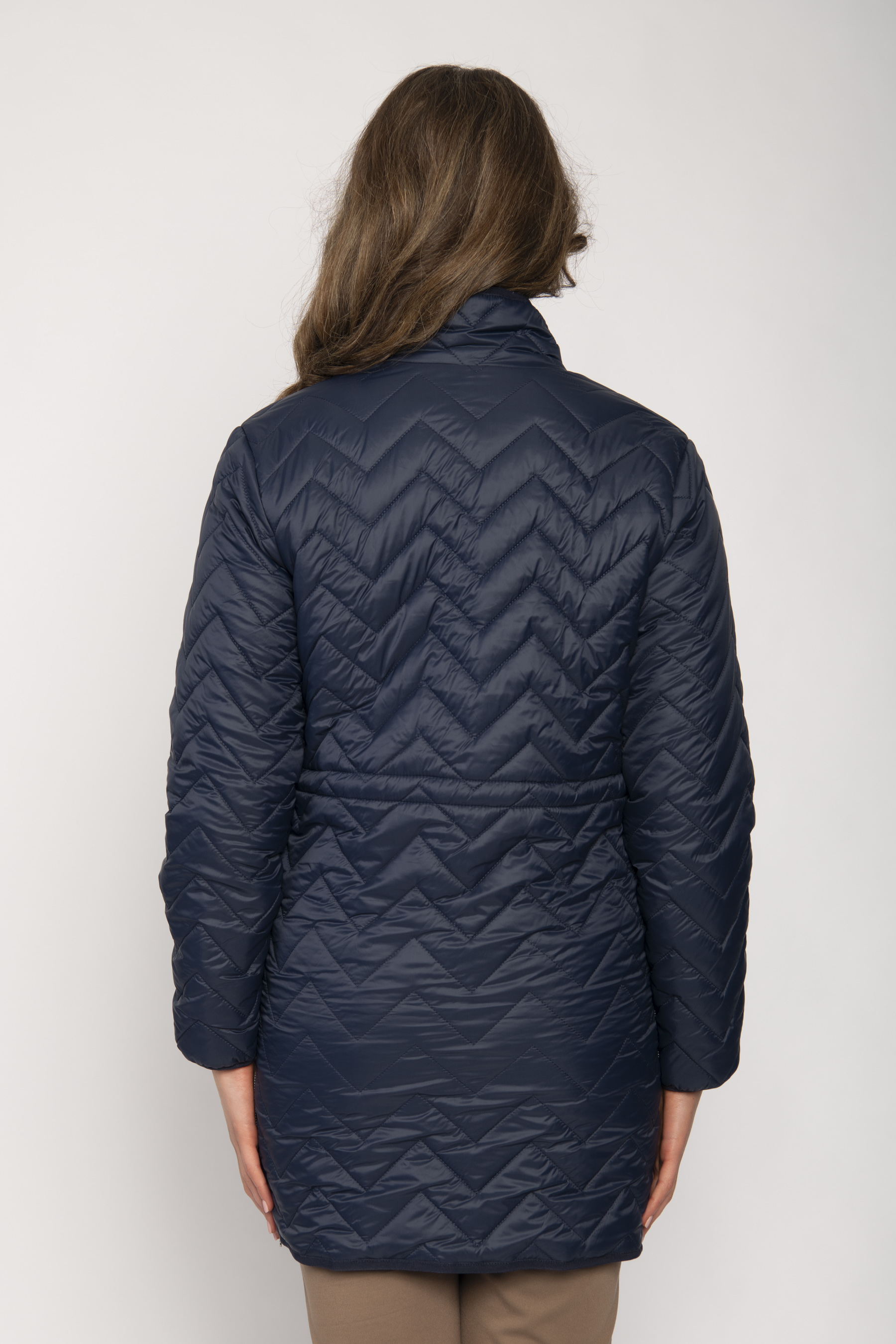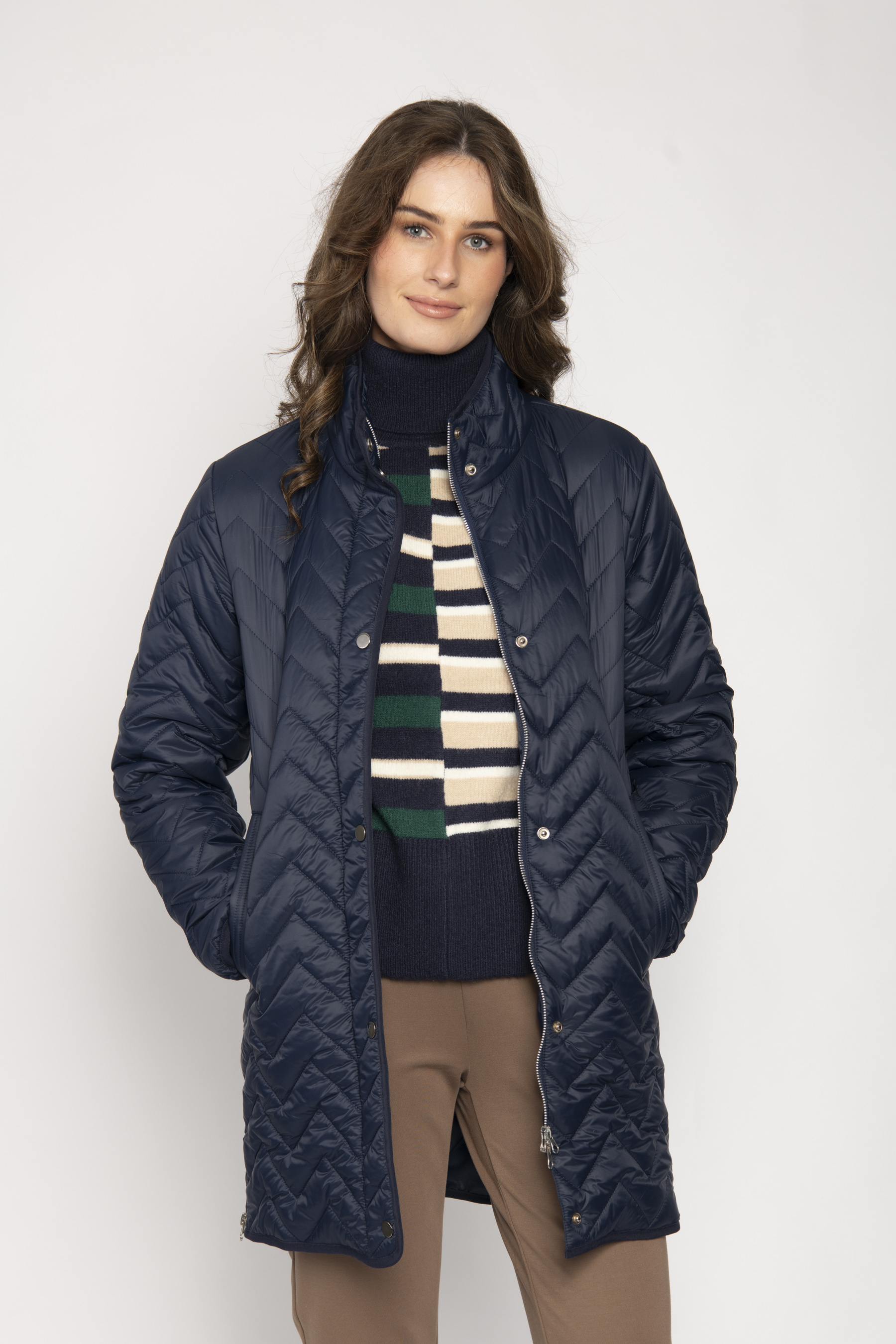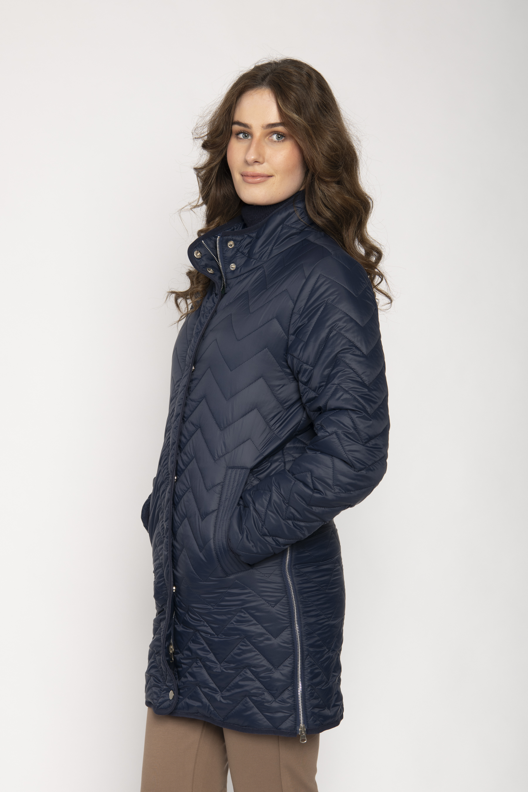 LONG PADDED JACKET WITH CHEVRON STITCHING STAND COLLAR
