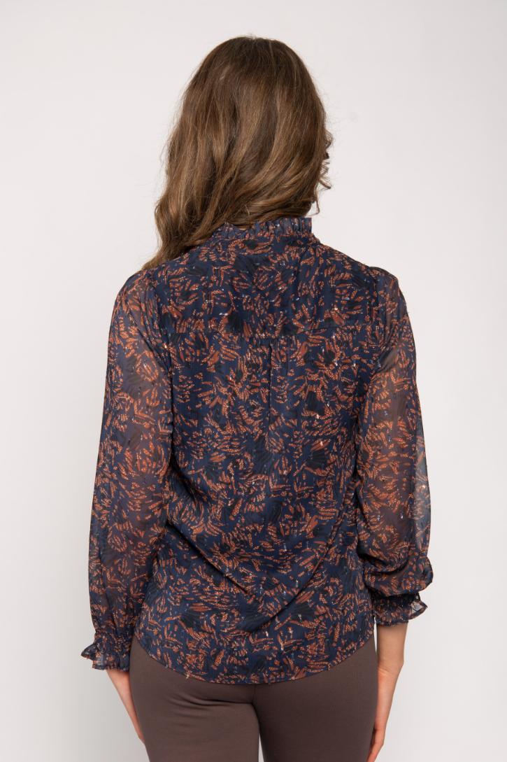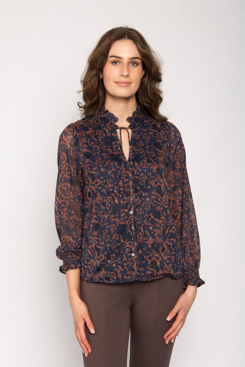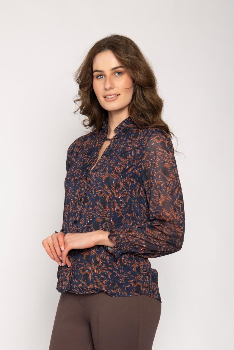 RUFFLE NECK SHIRT WITH TIE PRINTED GEORGETTE & LUREX