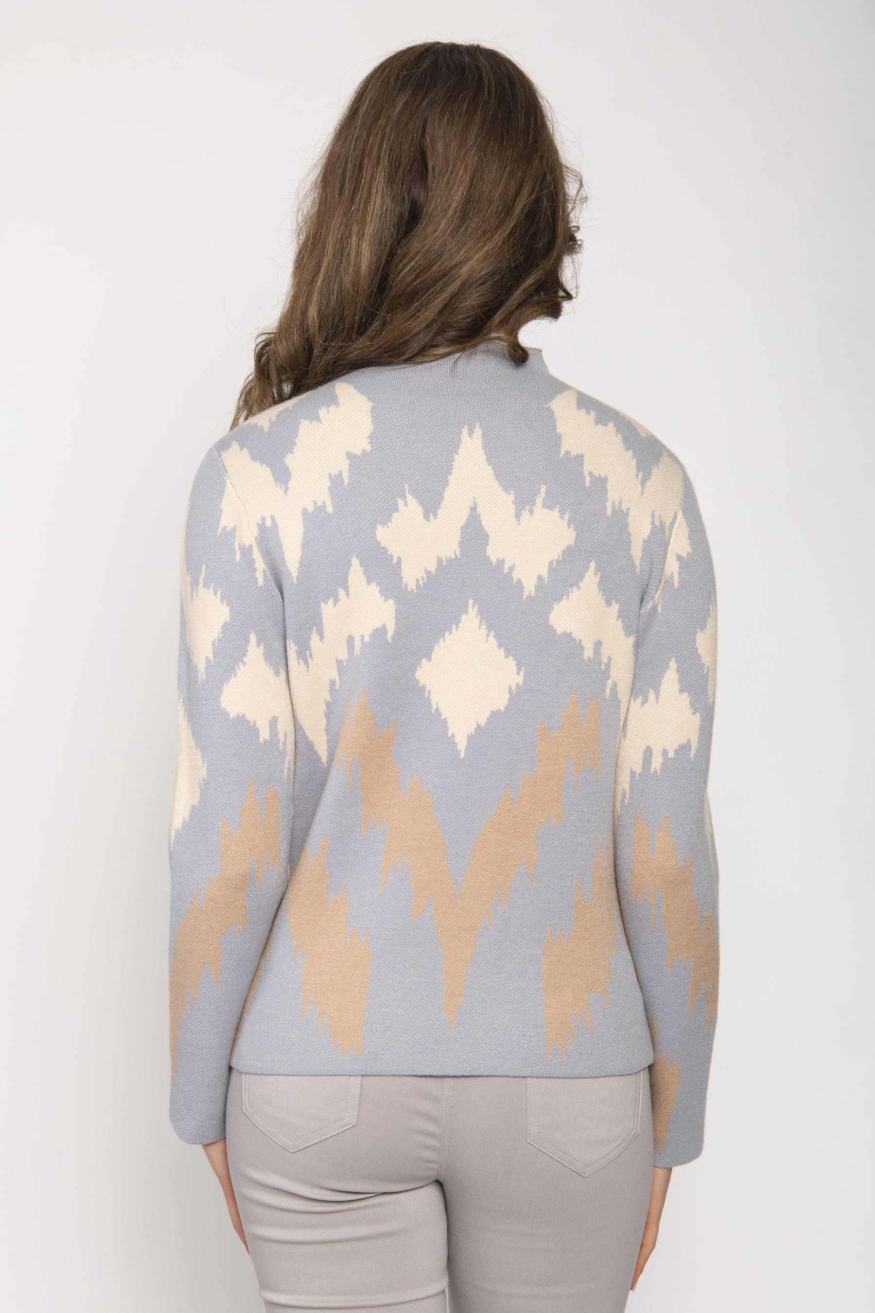 FUNNEL NECK LONG SLEEVE SWEATER 3 COLOUR WITH JAGGED V CHEVRON JACQUARD
