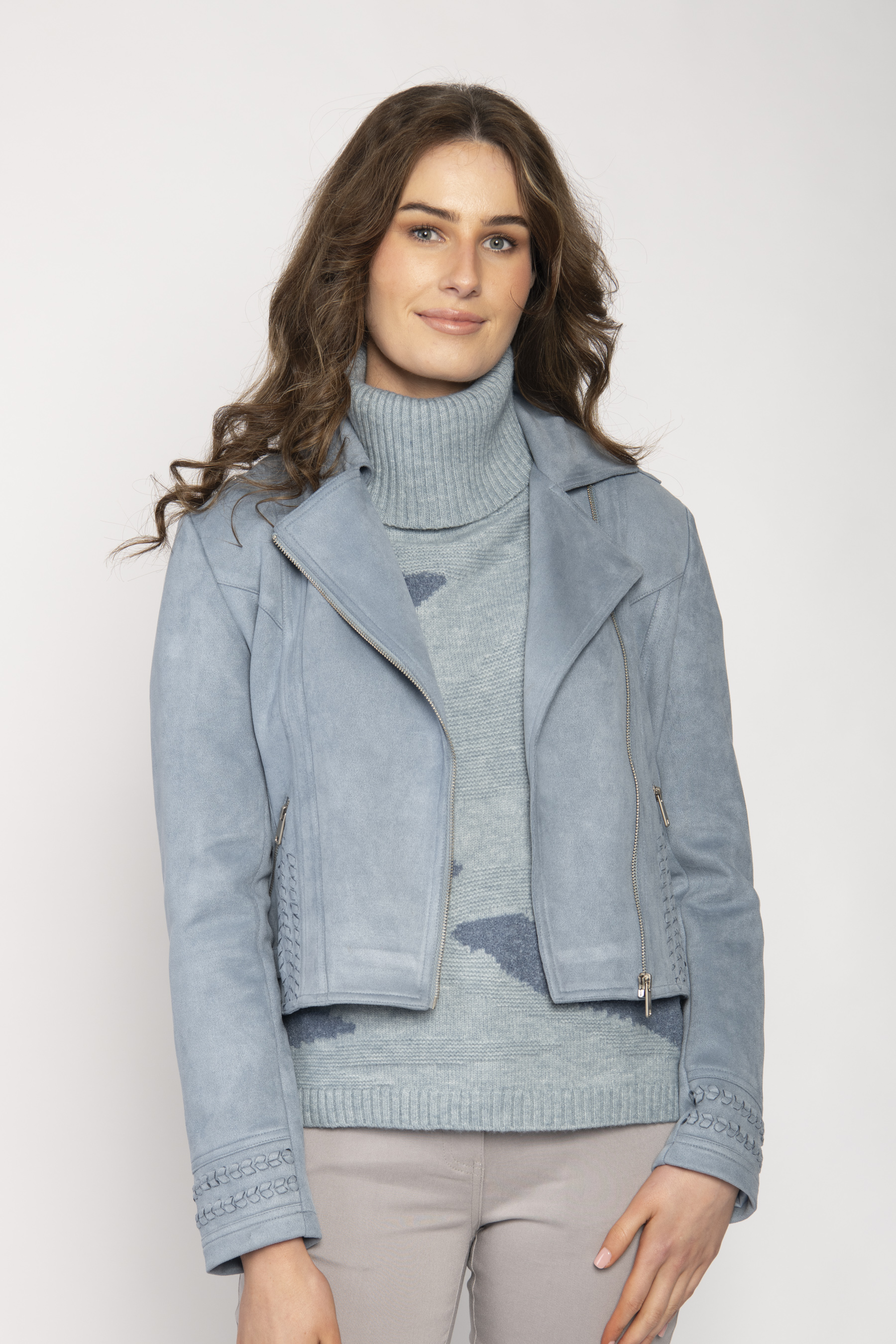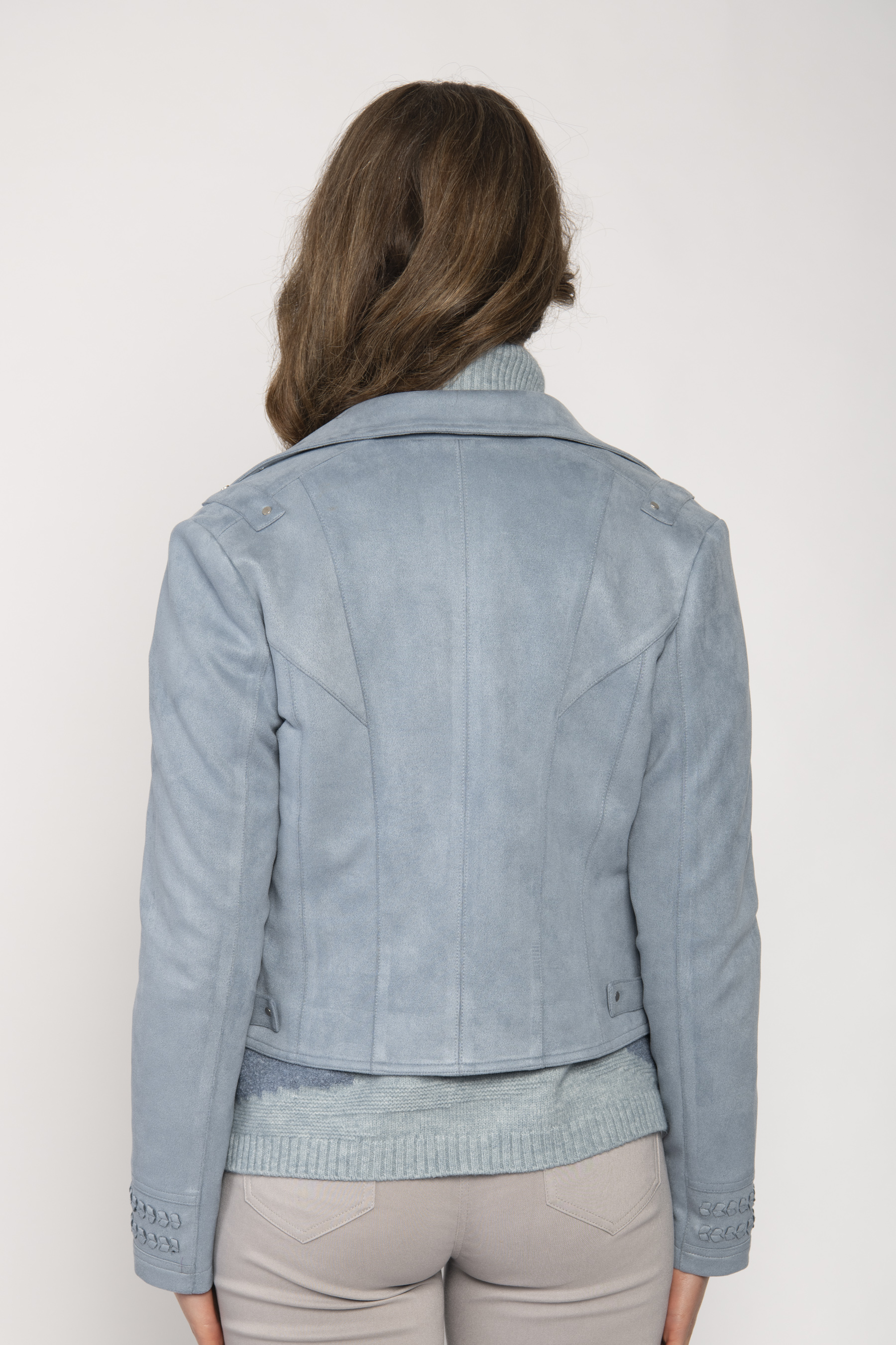 STRETCH POLYESTER SUEDE EFFECT BIKER JACKET