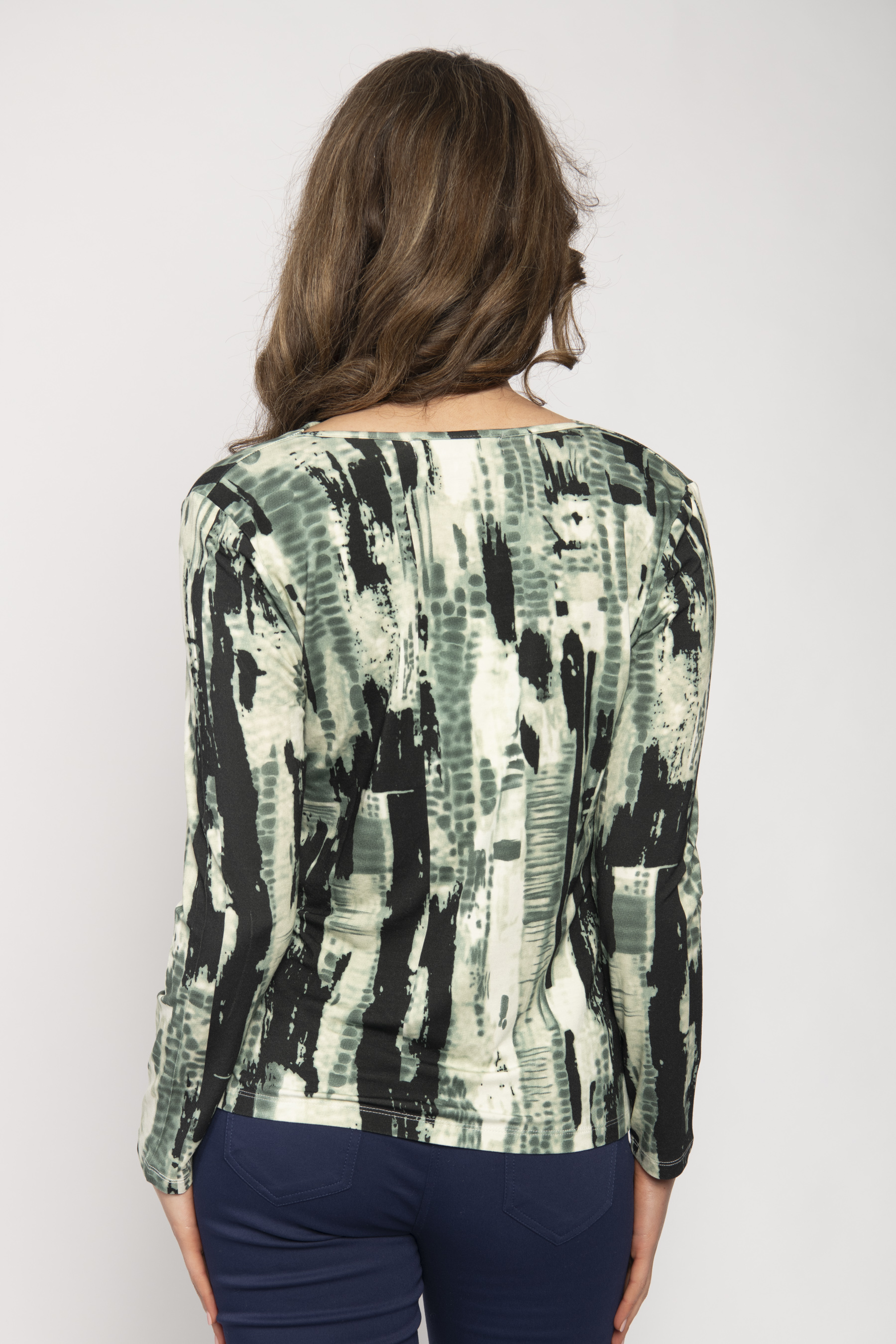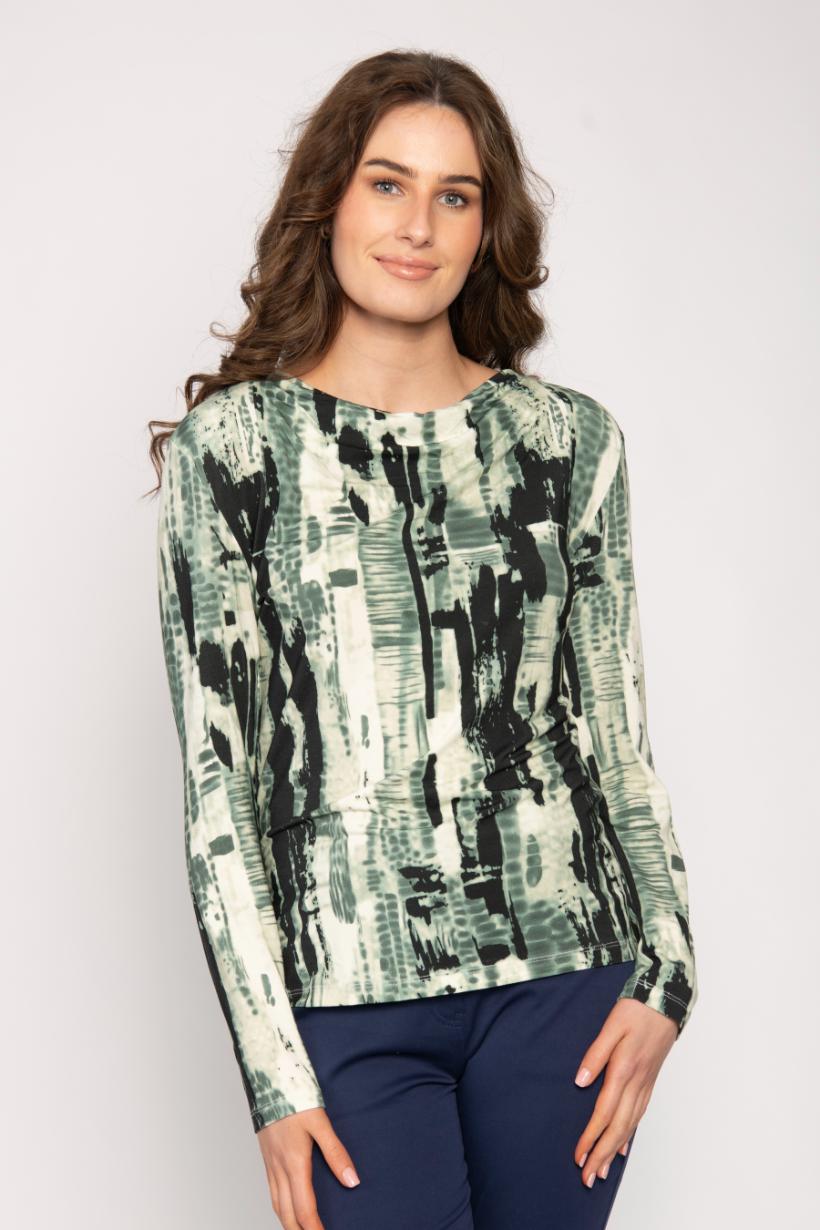 LONG SLEEVE JERSEY TOP , SOFT DRAPE COWL NECK FOREST BARK PRINT