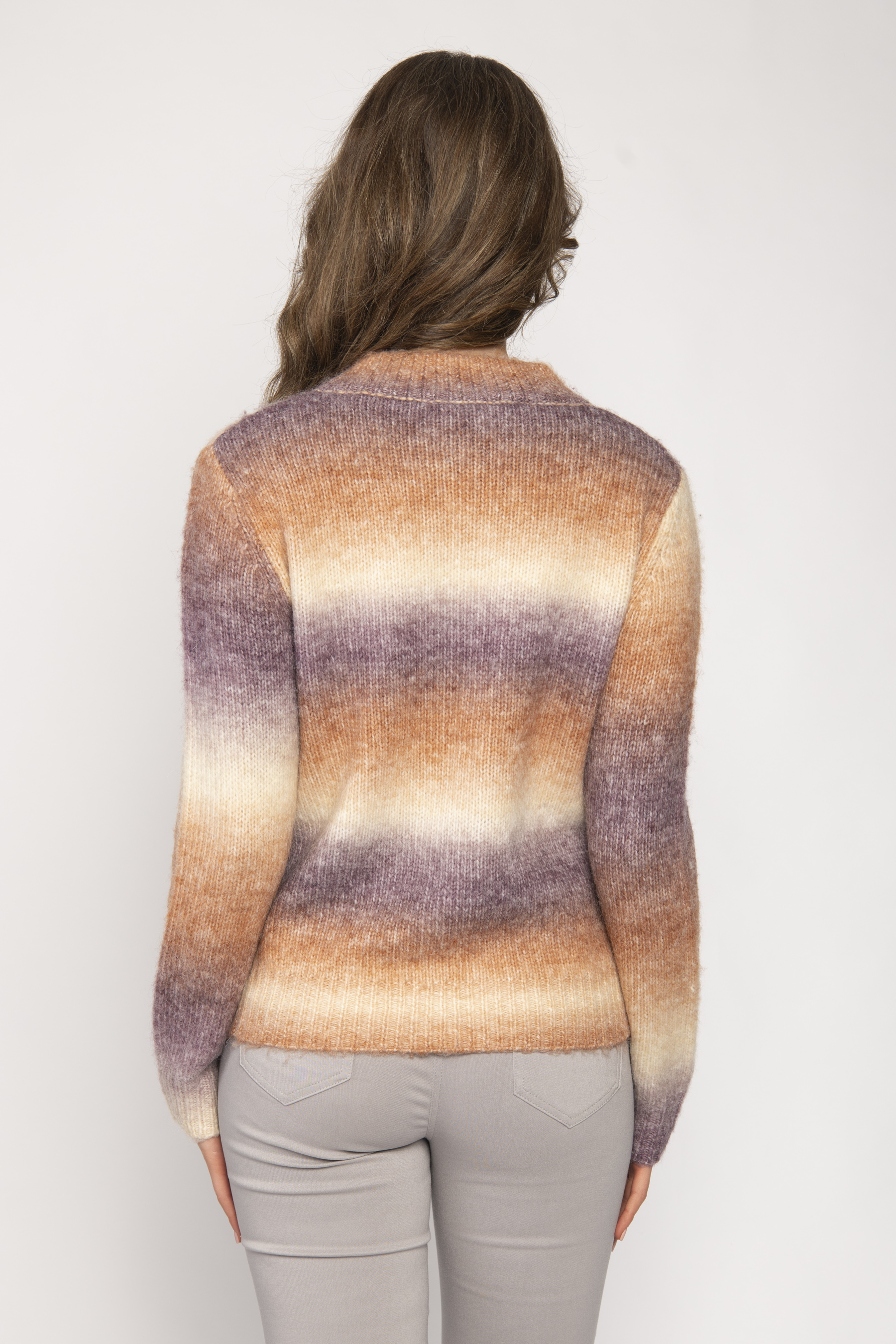 ROUND NECK LONG SLEEVE ZIP CARDIGAN OMBRE SPACE DYED PATTERN