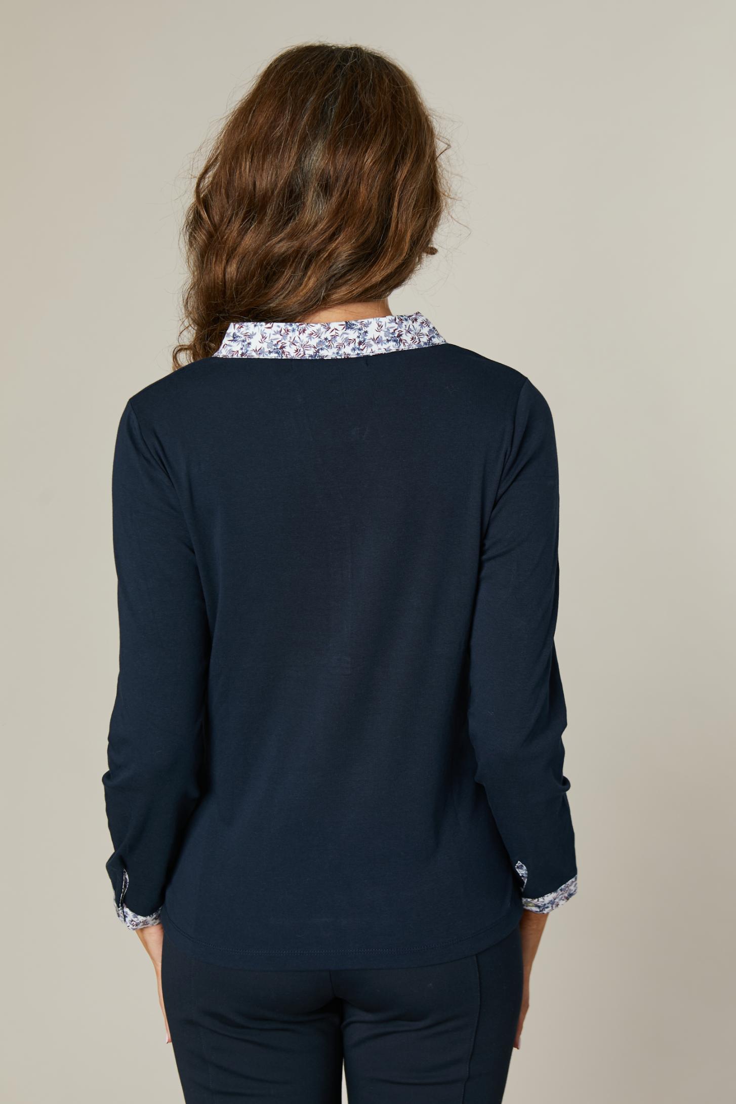 FLORAL PRINTED SHIRT COLLAR JERSEY TOP LONG SLEEVE WITH PRINT CUFF TRIM