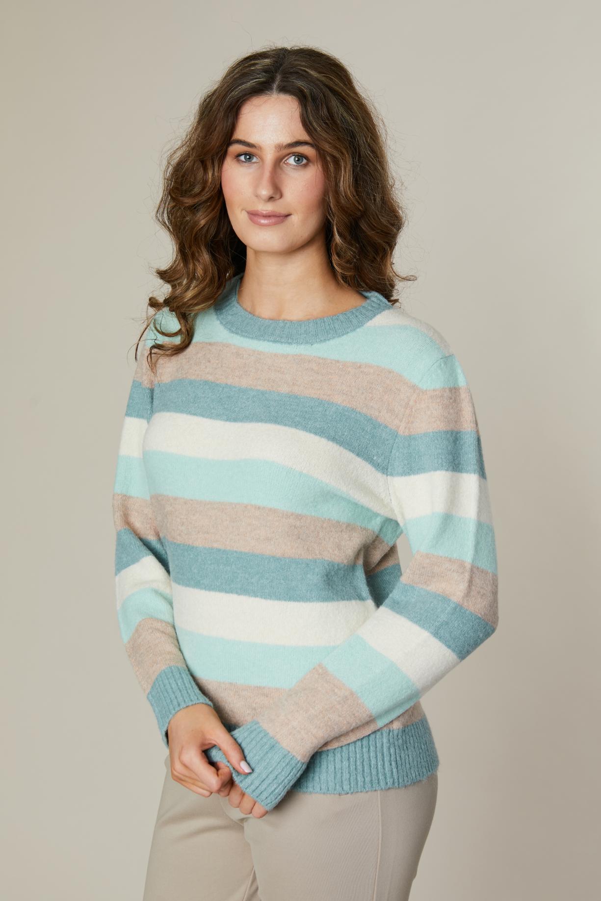 ROUND NECK LONG SLEEVE SWEATER WITH STRIPES