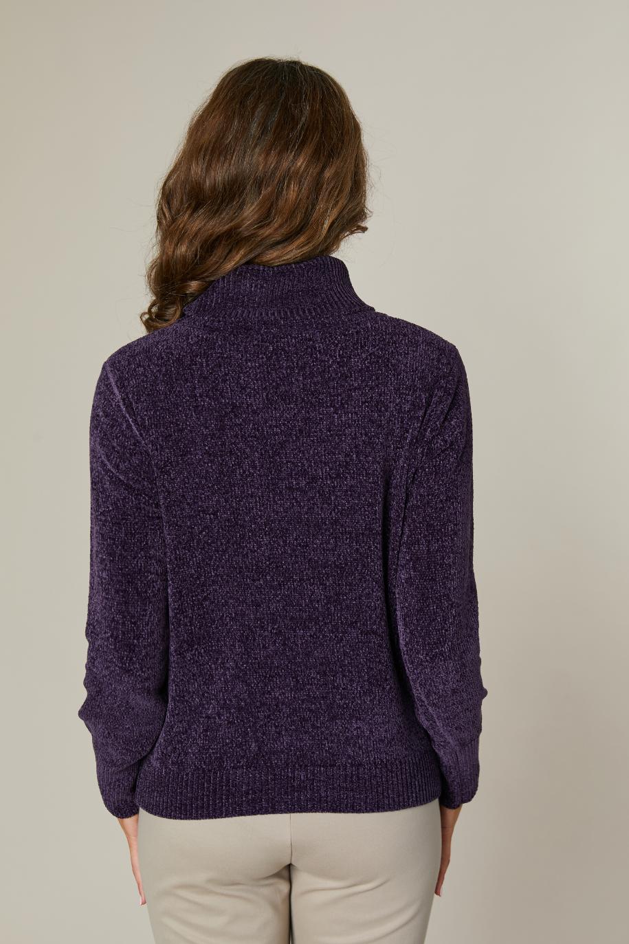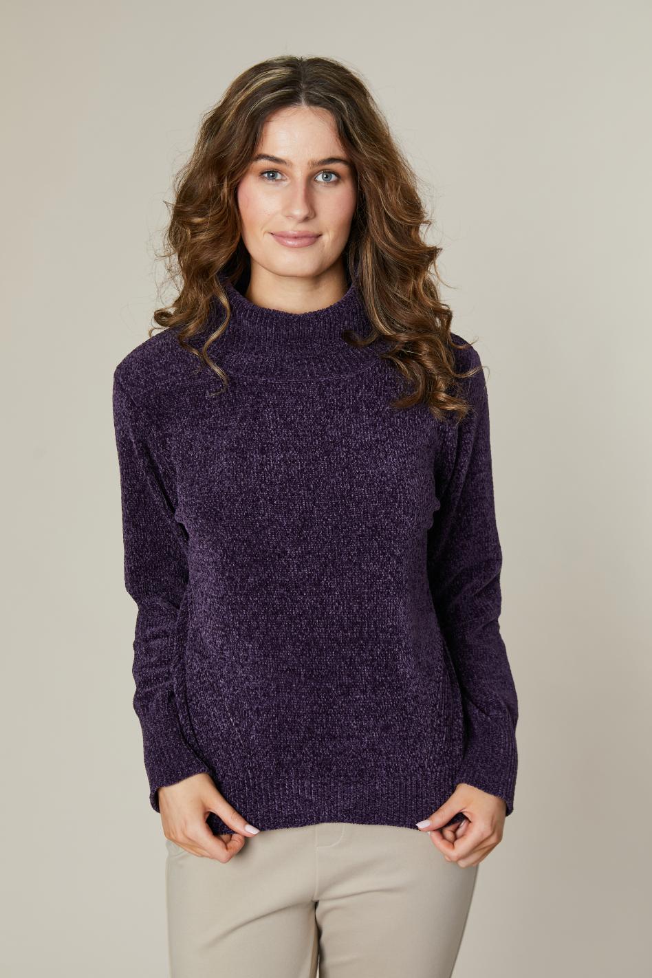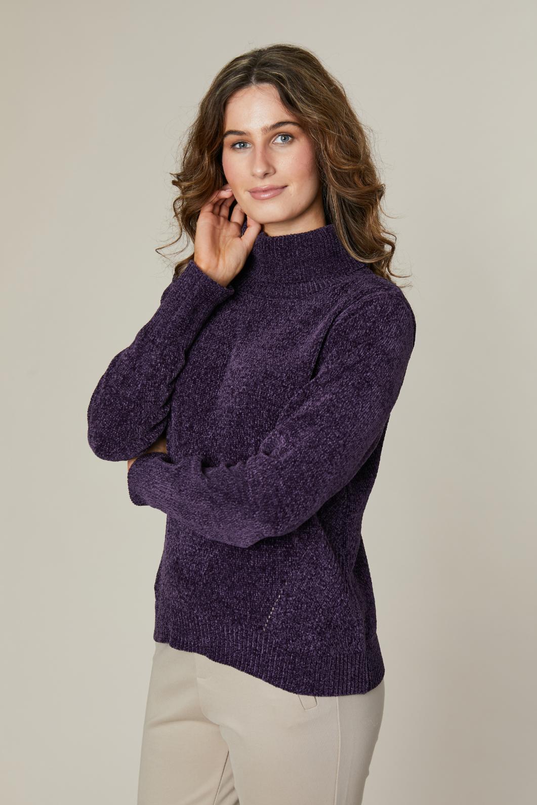 SOFT TURTLE NECK LONG SLEEVE CHENILLE KNIT TOP WITH DIAGONAL RIB AT SIDES & DEEP CUFF
