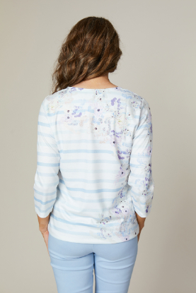 ROUND NECK LONG SLEEVE T-SHIRT WITH STRIPE/FLORAL PRINT