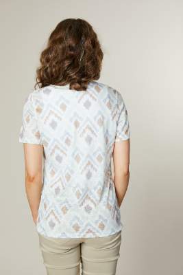 NOTCH NECK PRINTED TOP WITH BUTTON PLAQUET