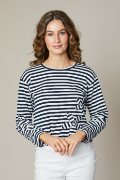 ROUND NECK STRIPED T-SHIRT WITH FLORAL APPLIQUE
