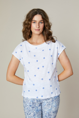 BOAT NECK SLEEVELESS T-SHIRT WITH MINI SUN PRINT