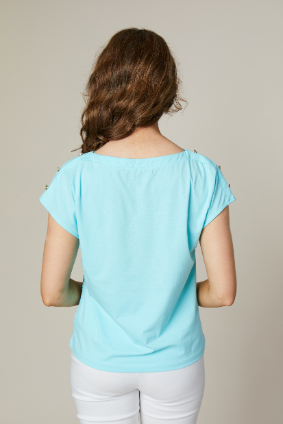 BOAT NECK T-SHIRT WITH EMBROIDERY AND BUTTONS ON SHOULDER