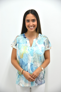 NOTCH NECK PRINTED T-SHIRT WITH LACE AT SHOULDER