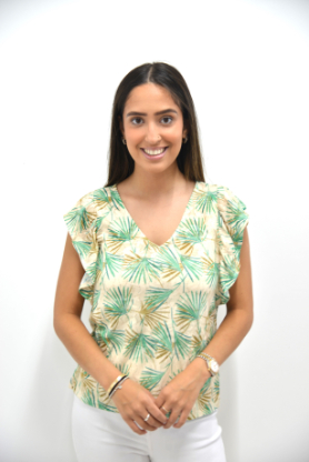 V-NECK LEAF PRINTED T-SHIRT