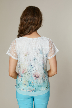 PRINTED BOAT NECK MESH T-SHIRT WITH SEQUINS