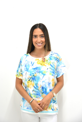 PRINTED BOAT NECK TOP WITH RING CLASP DETAIL AT NECKLINE