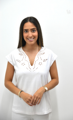 SCALLOP V-NECK T-SHIRT WITH EMBROIDERY