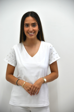 V-NECK T-SHIRT WITH DIAMANTE ON SLEEVES