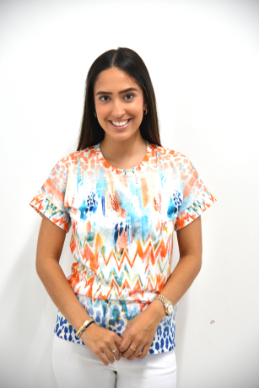PRINTED ROUND NECK T-SHIRT WITH CUFF BORDER