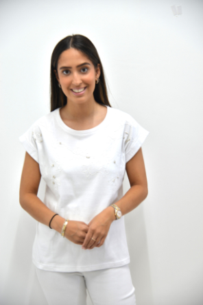 T-SHIRT WITH CORDED EMBROIDERY AND BEADS
