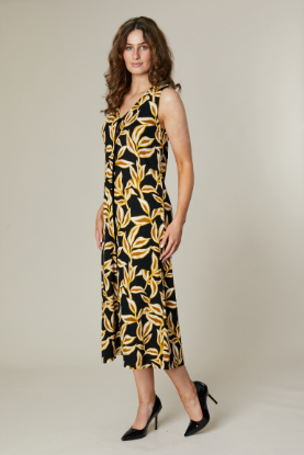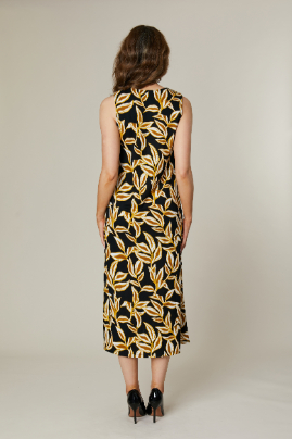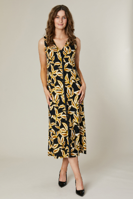 PRINTED LINEN LOOK DRESS WITH FRINGED TRIM