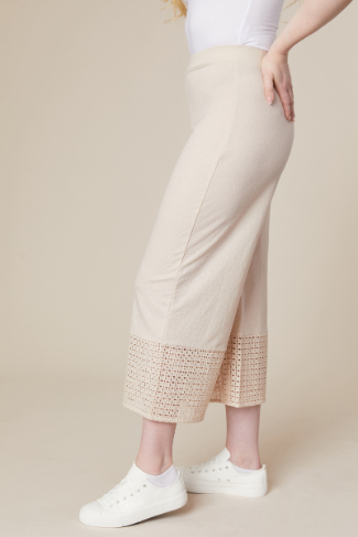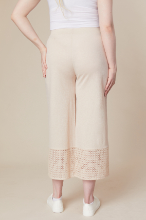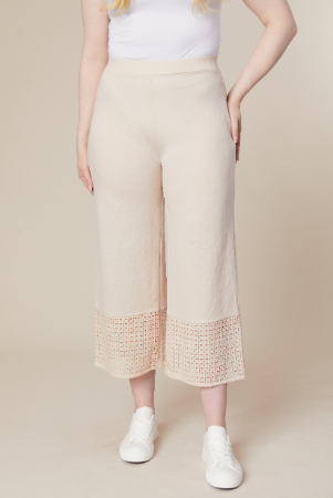 CROPPED LINEN LOOK TROUSERS WITH EMBROIDERED BORDER