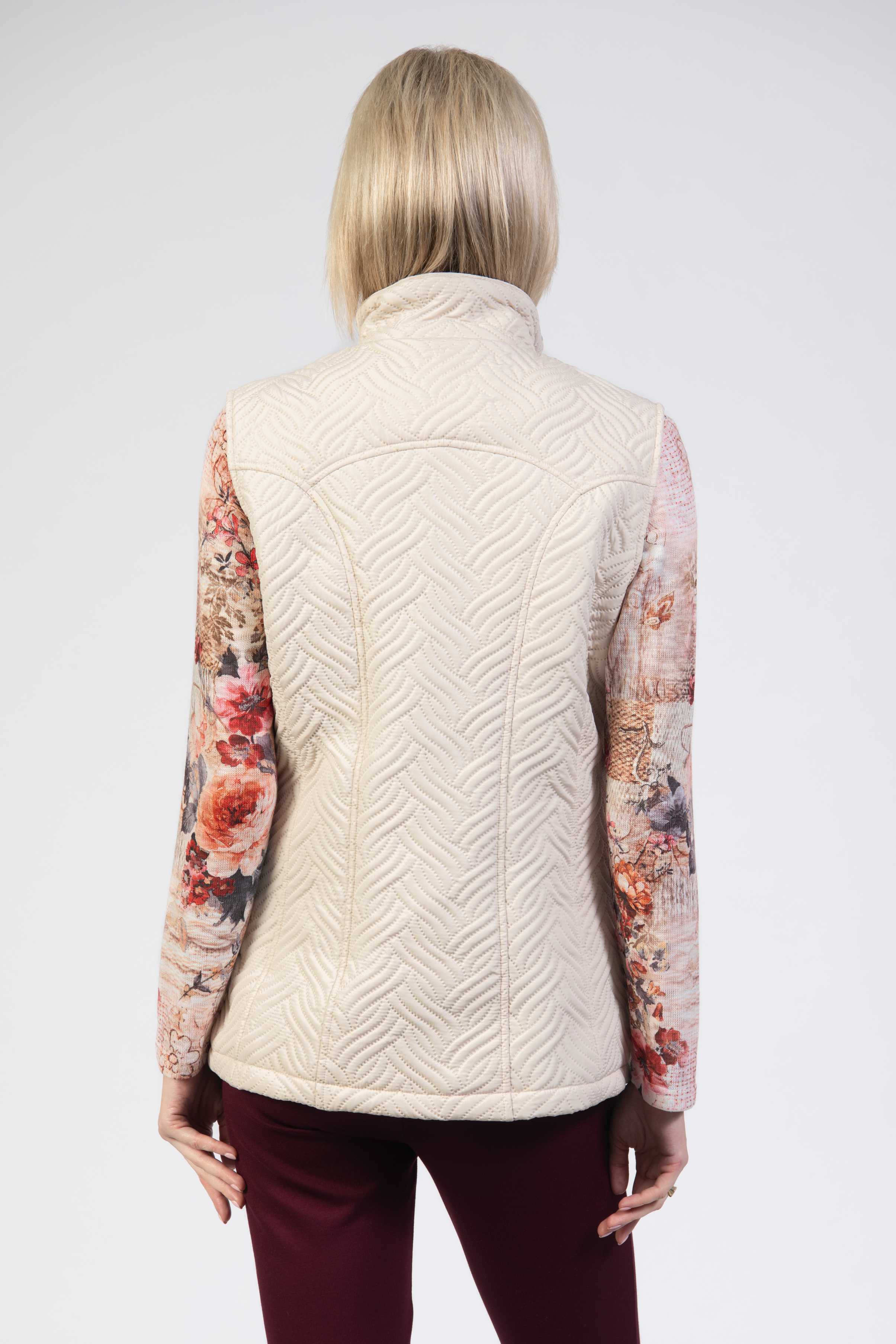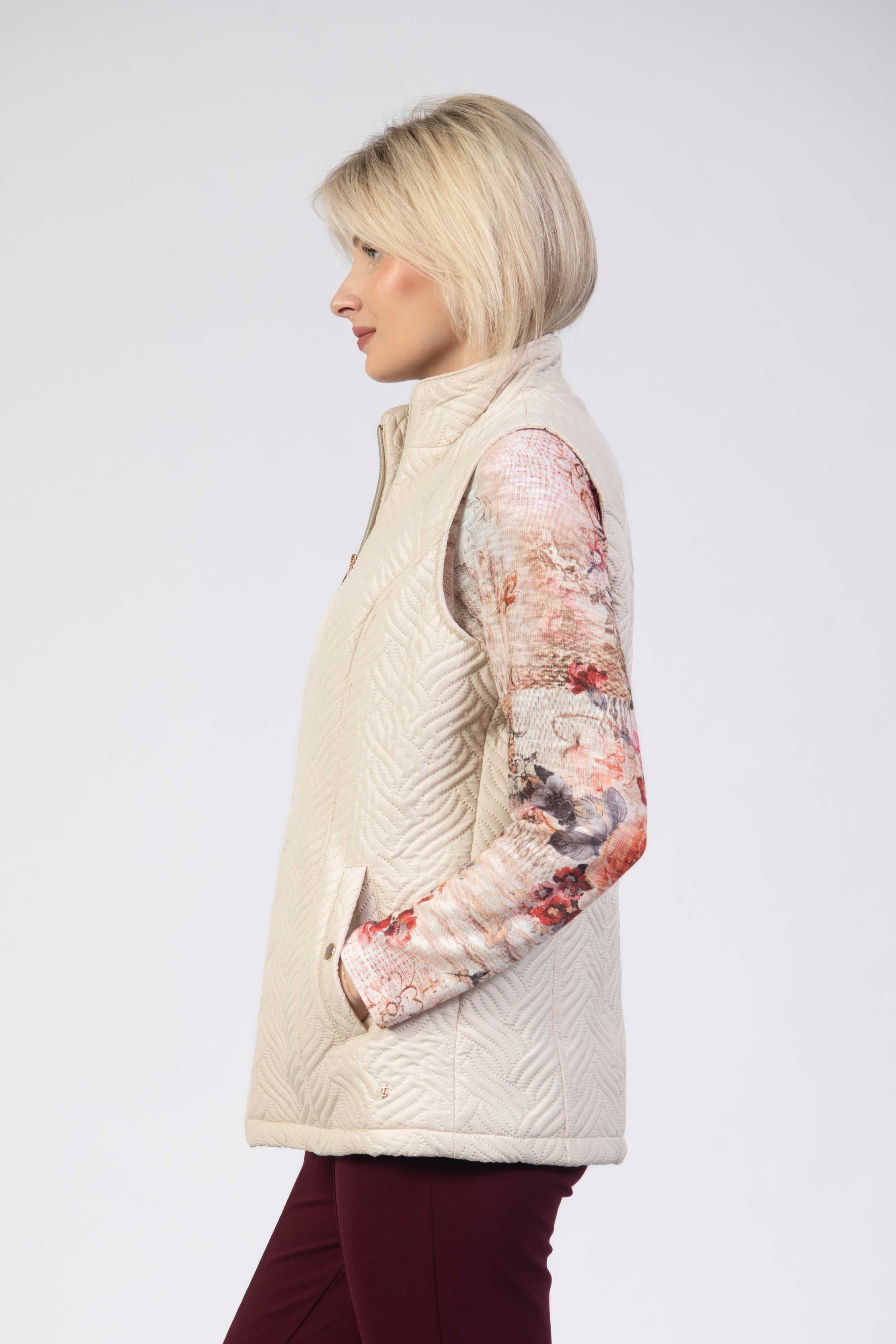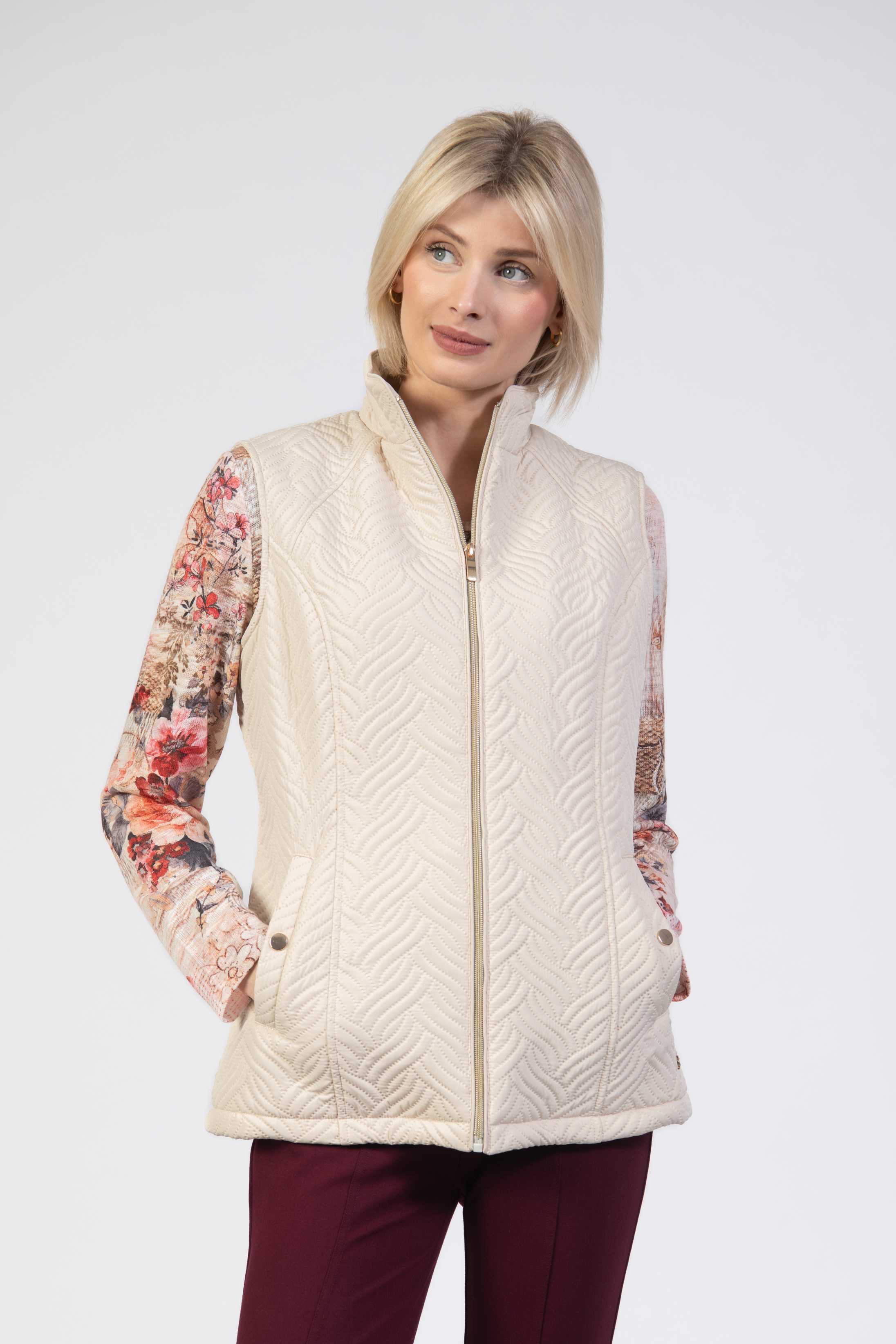 Embossed gilet, heat-embossed pattern, straight fit, gold zip, high neck, side pockets