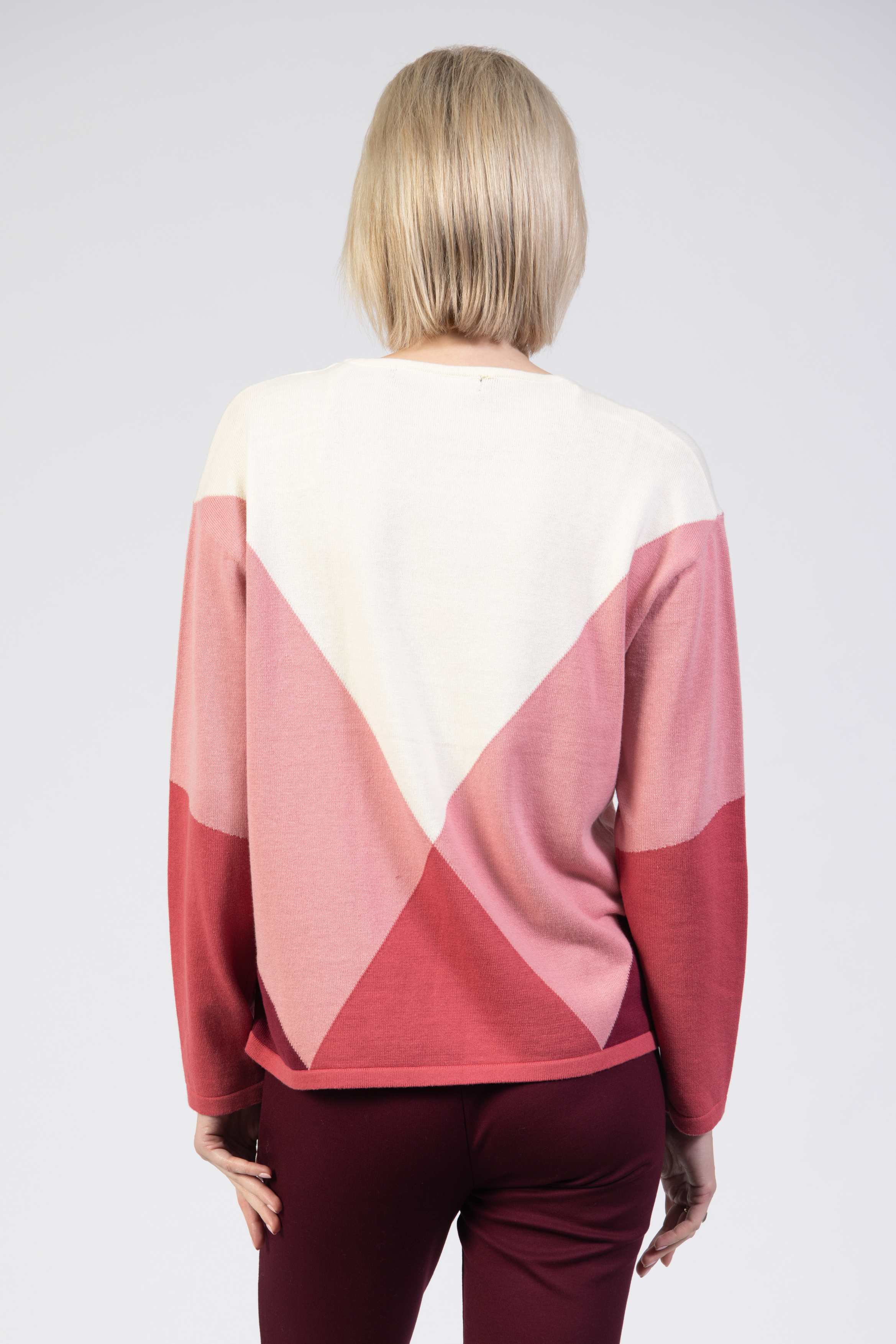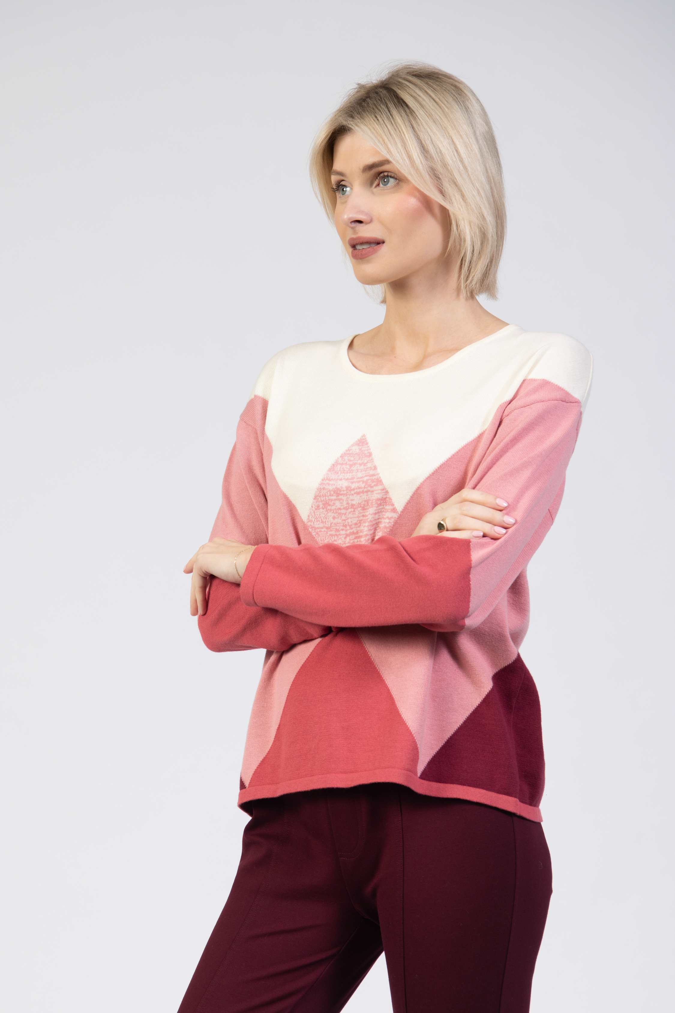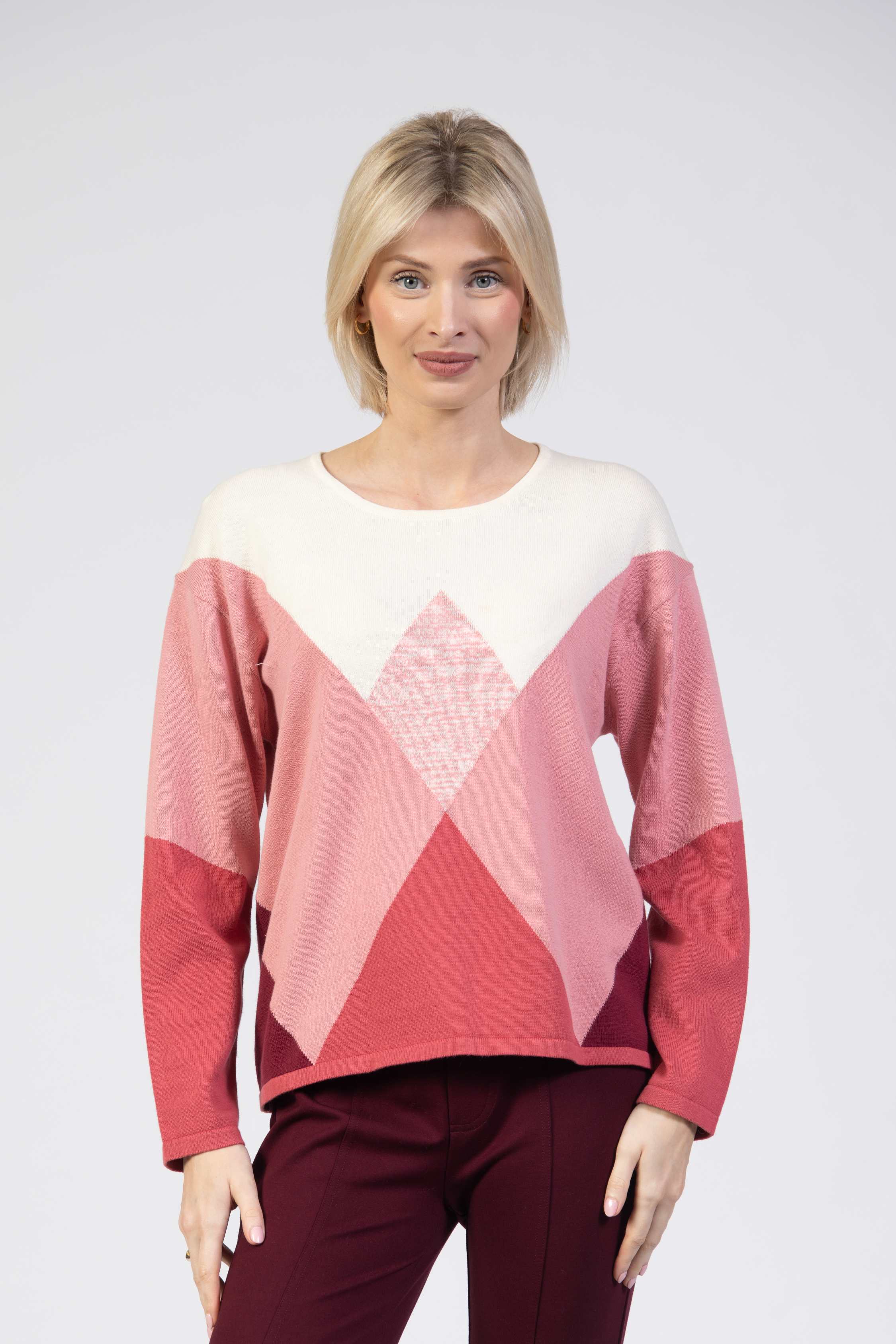 Round neck knit, relaxed fit, bold diamond tonal panels