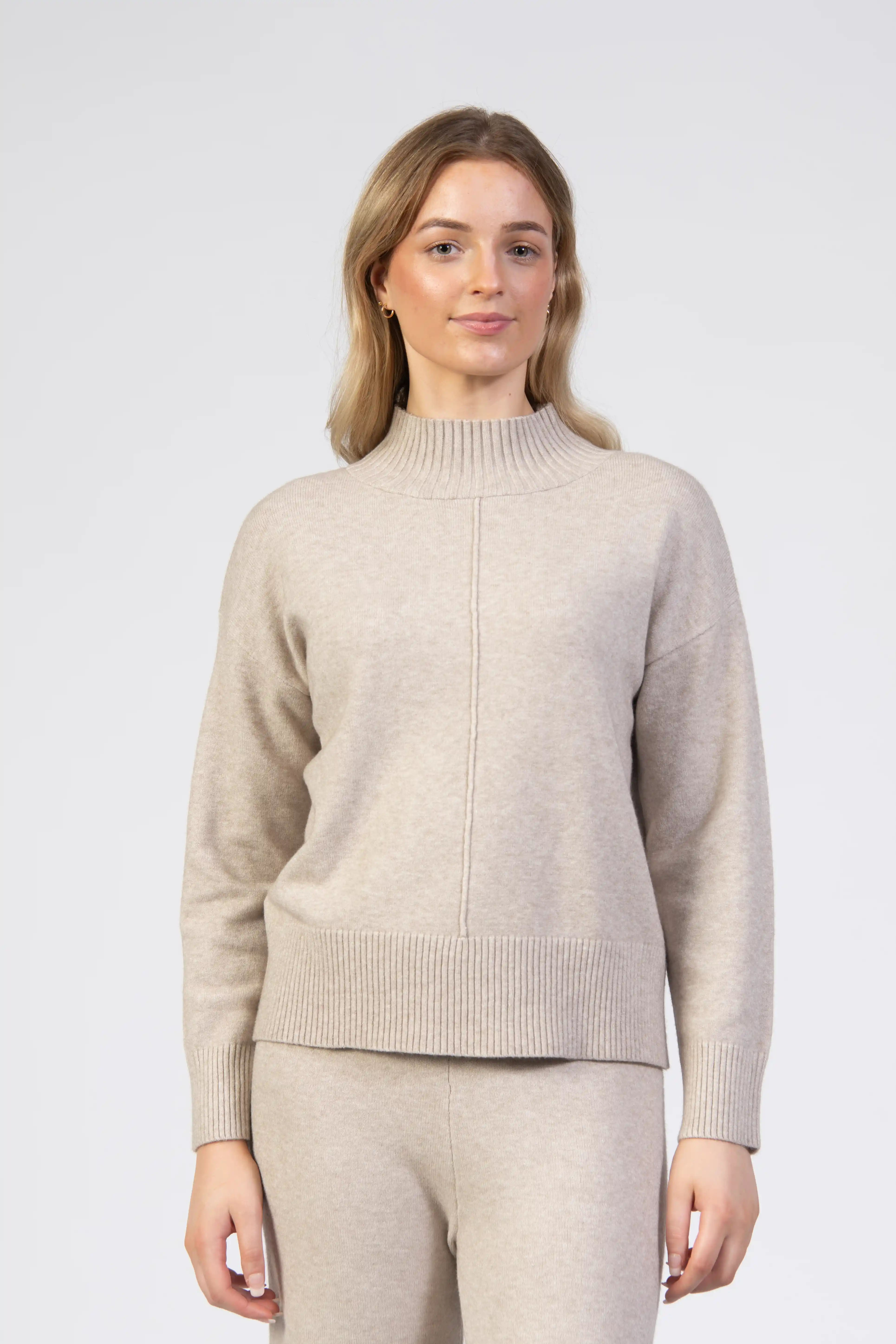 Turtle neck sweater, front style line, wide rib collar
