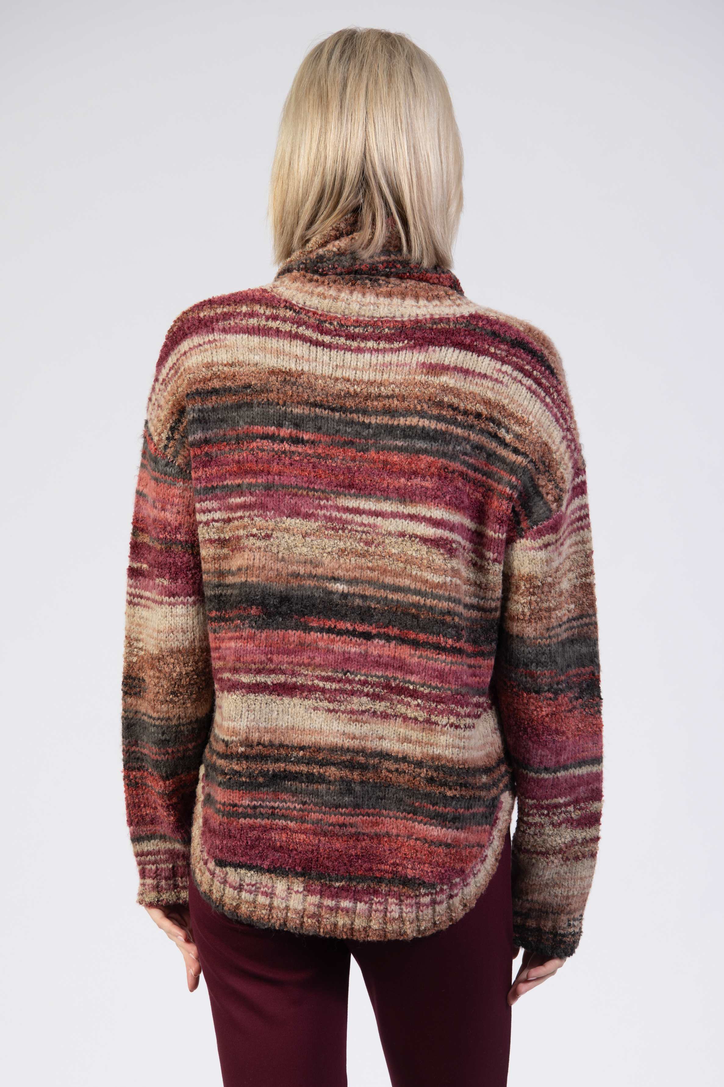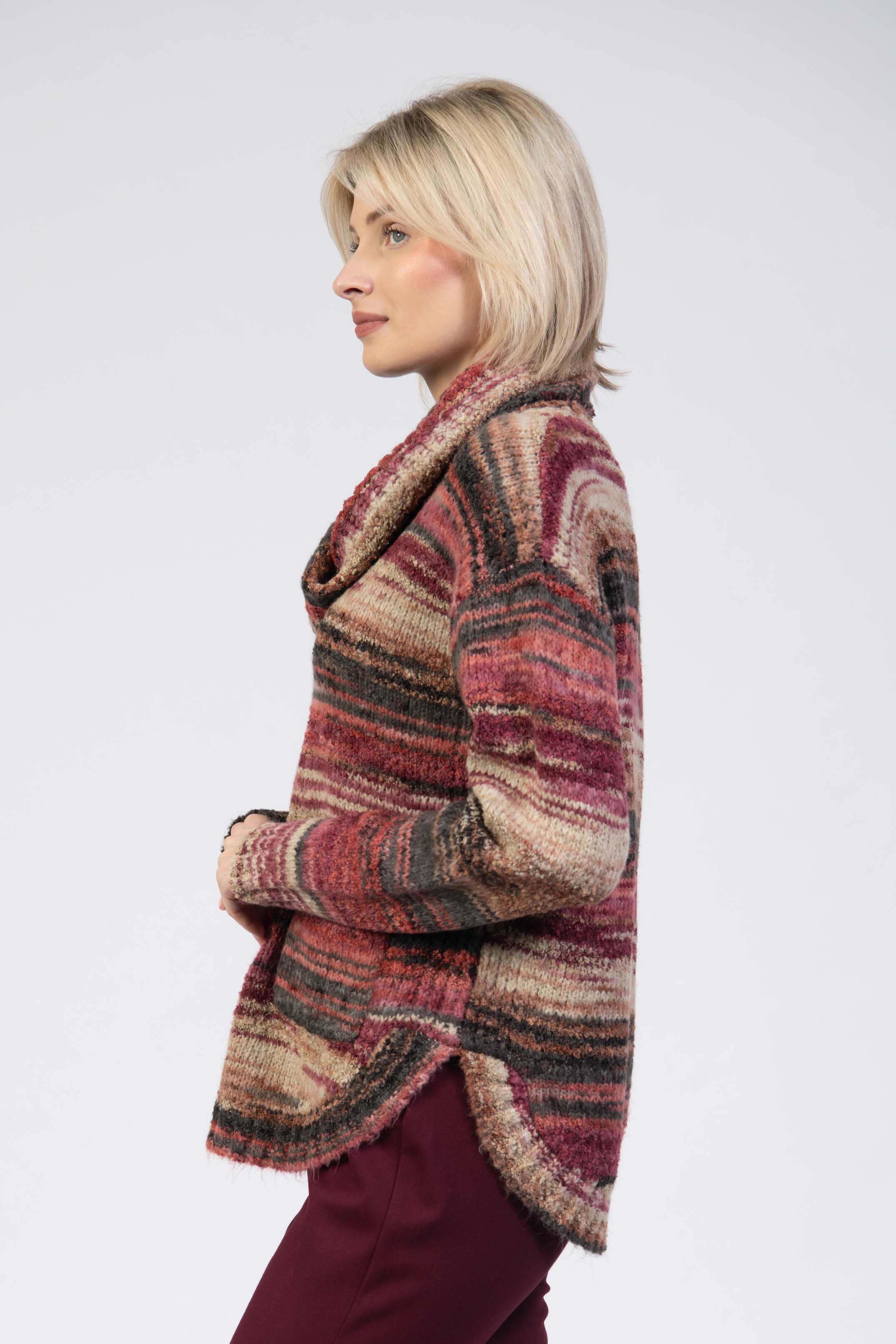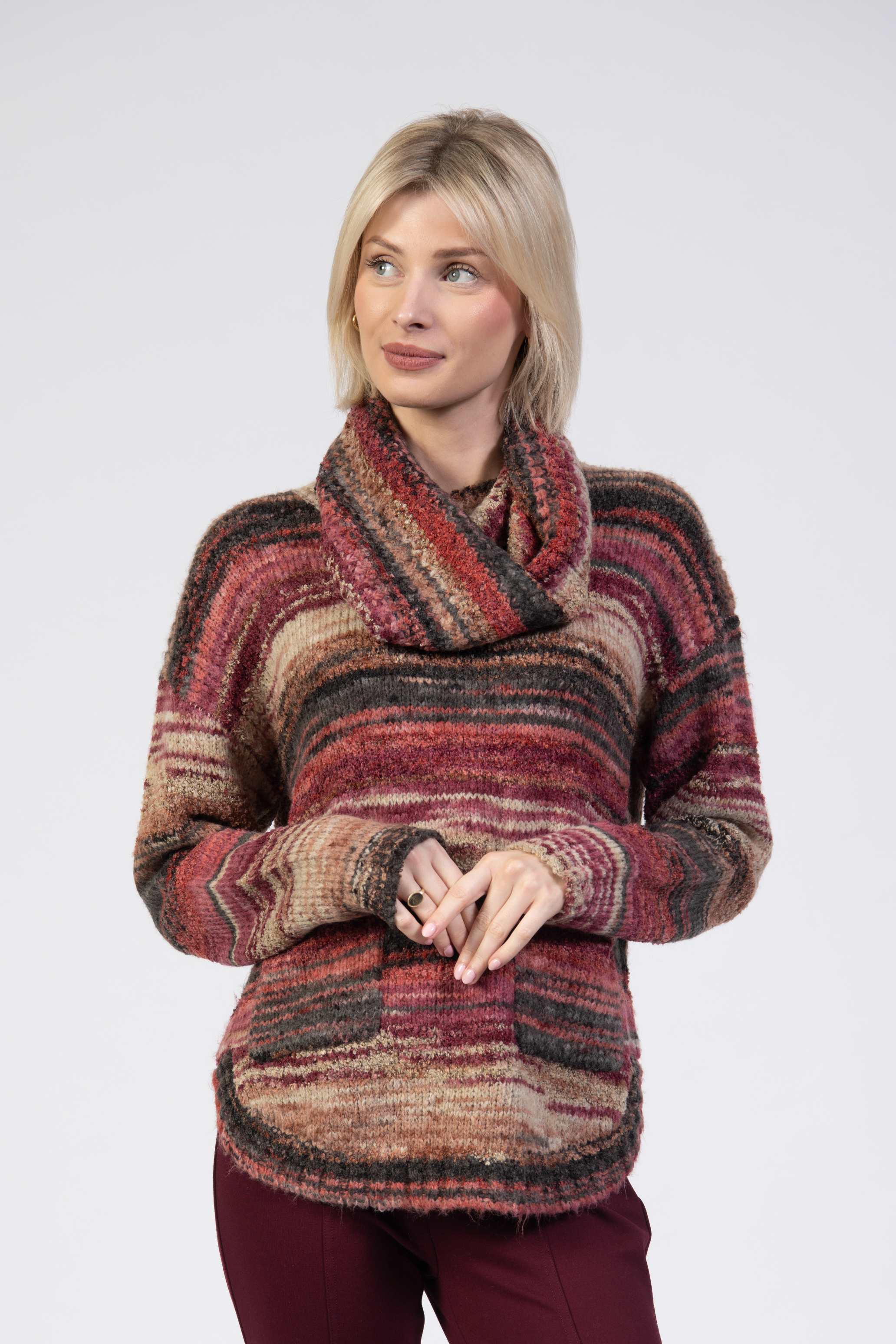 Space-dye sweater with snood, relaxed fit, rounded hem