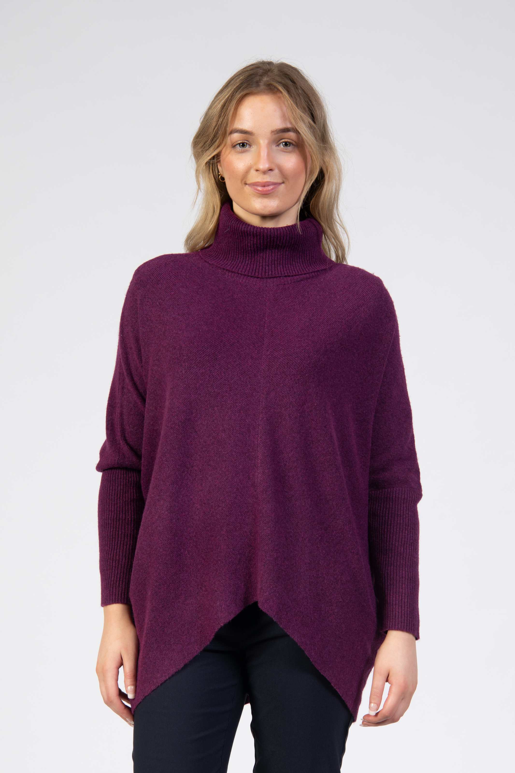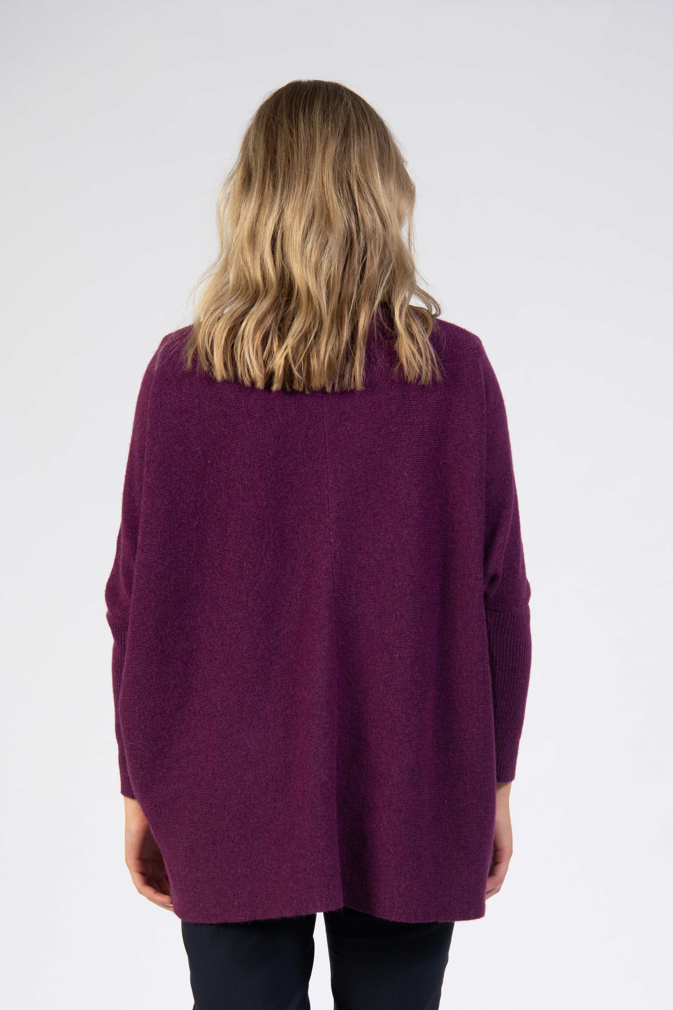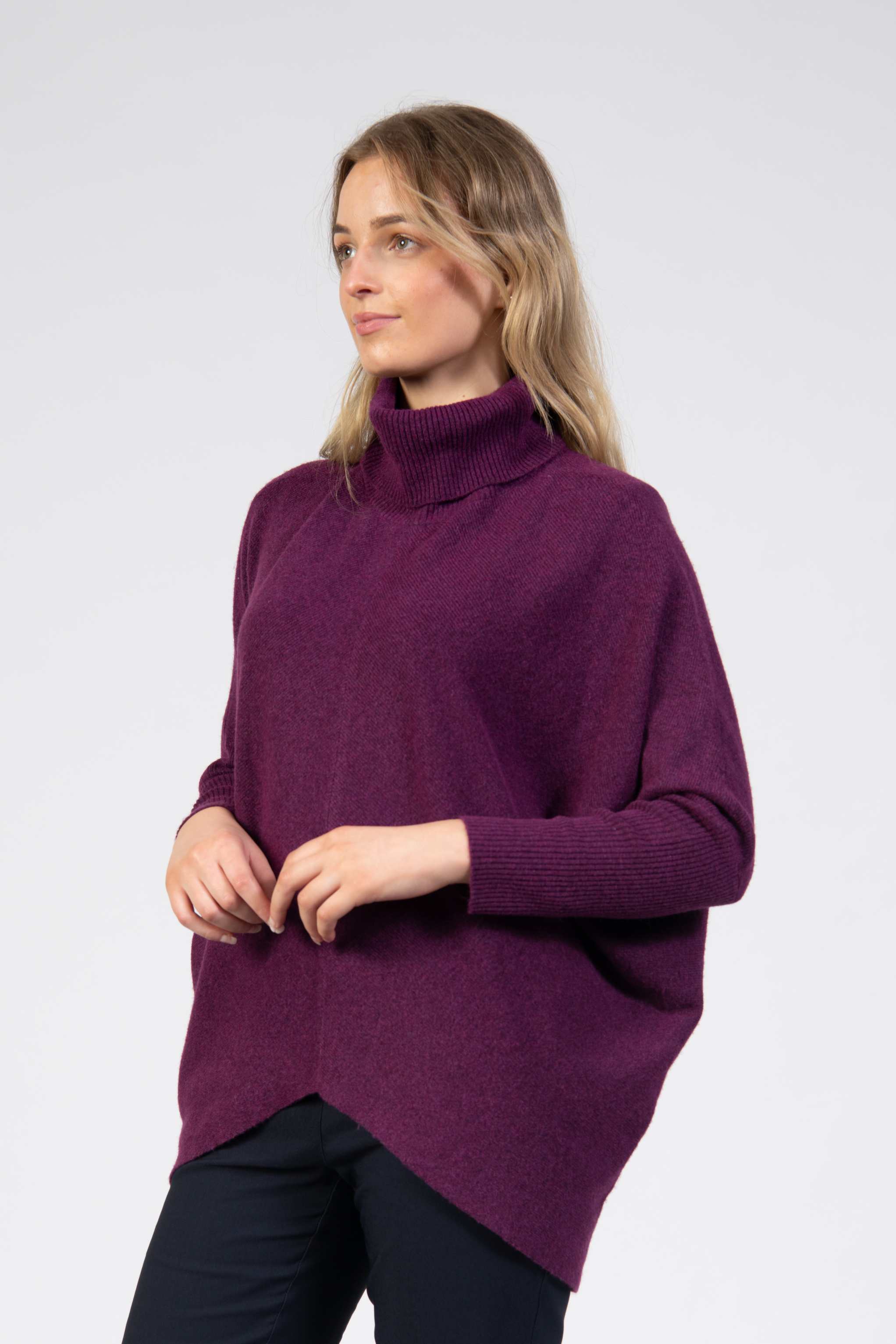 Cowl batwing knit, cropped, balloon sleeves, sculpted hem, high turtle neckline