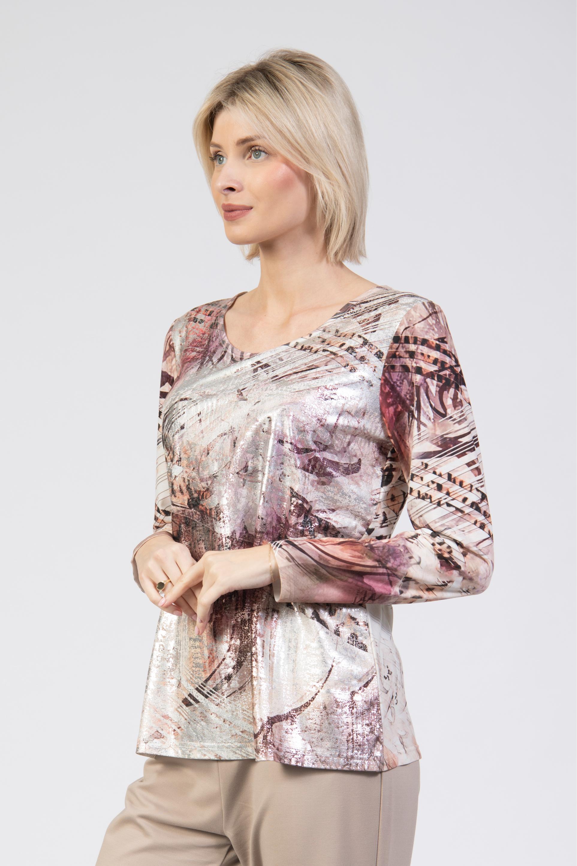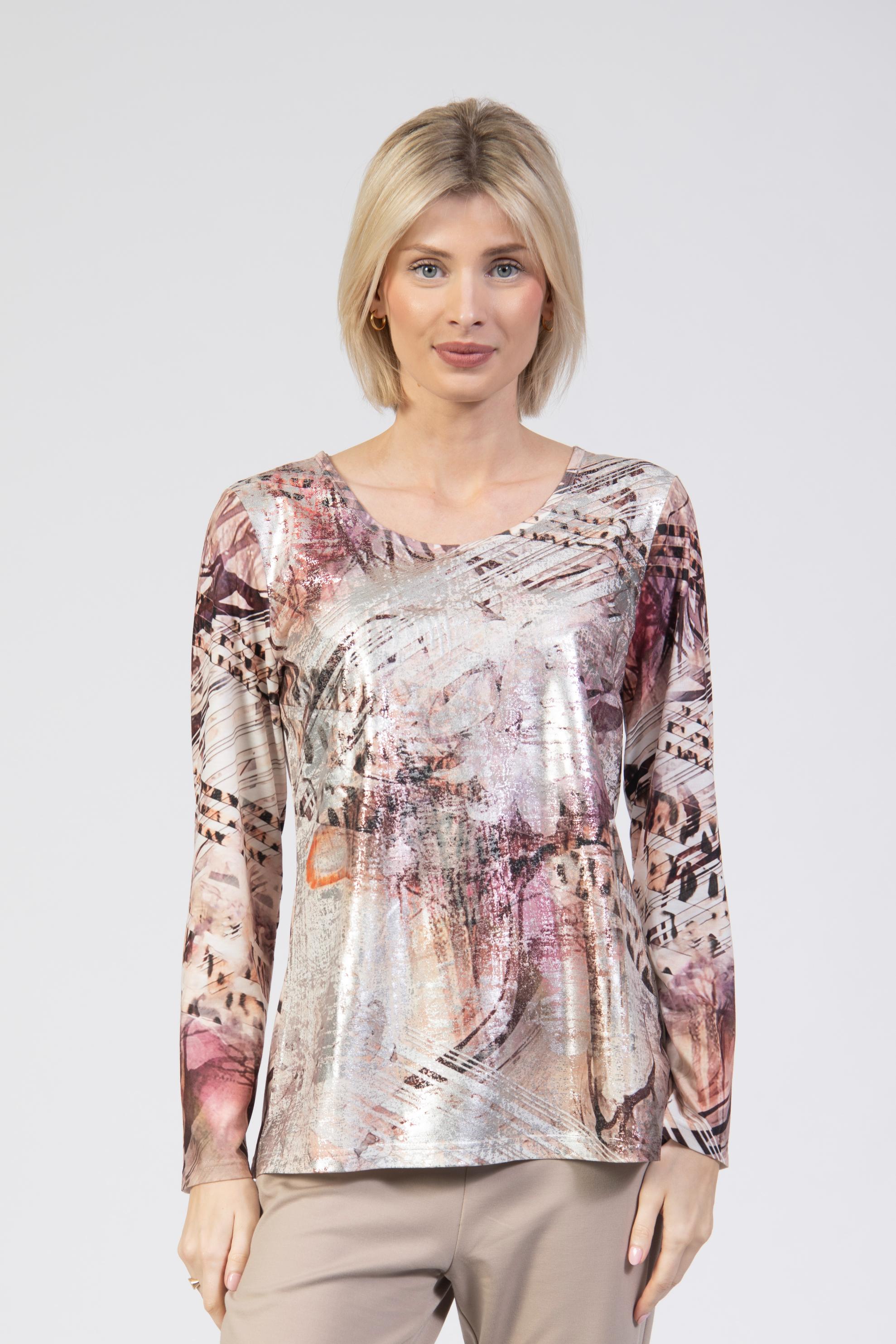 Printed top, foil scratch effect, ombré abstract