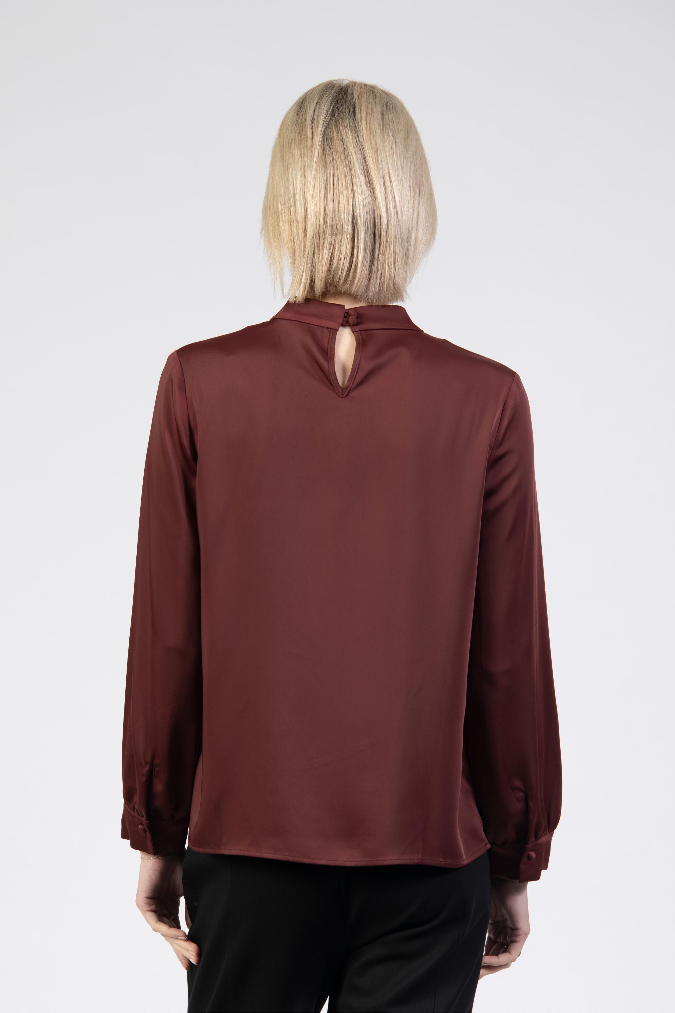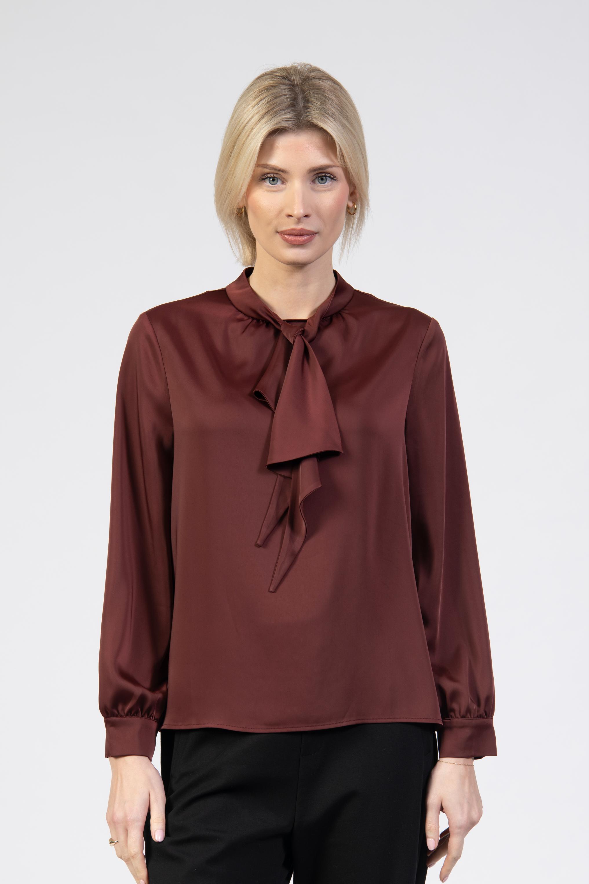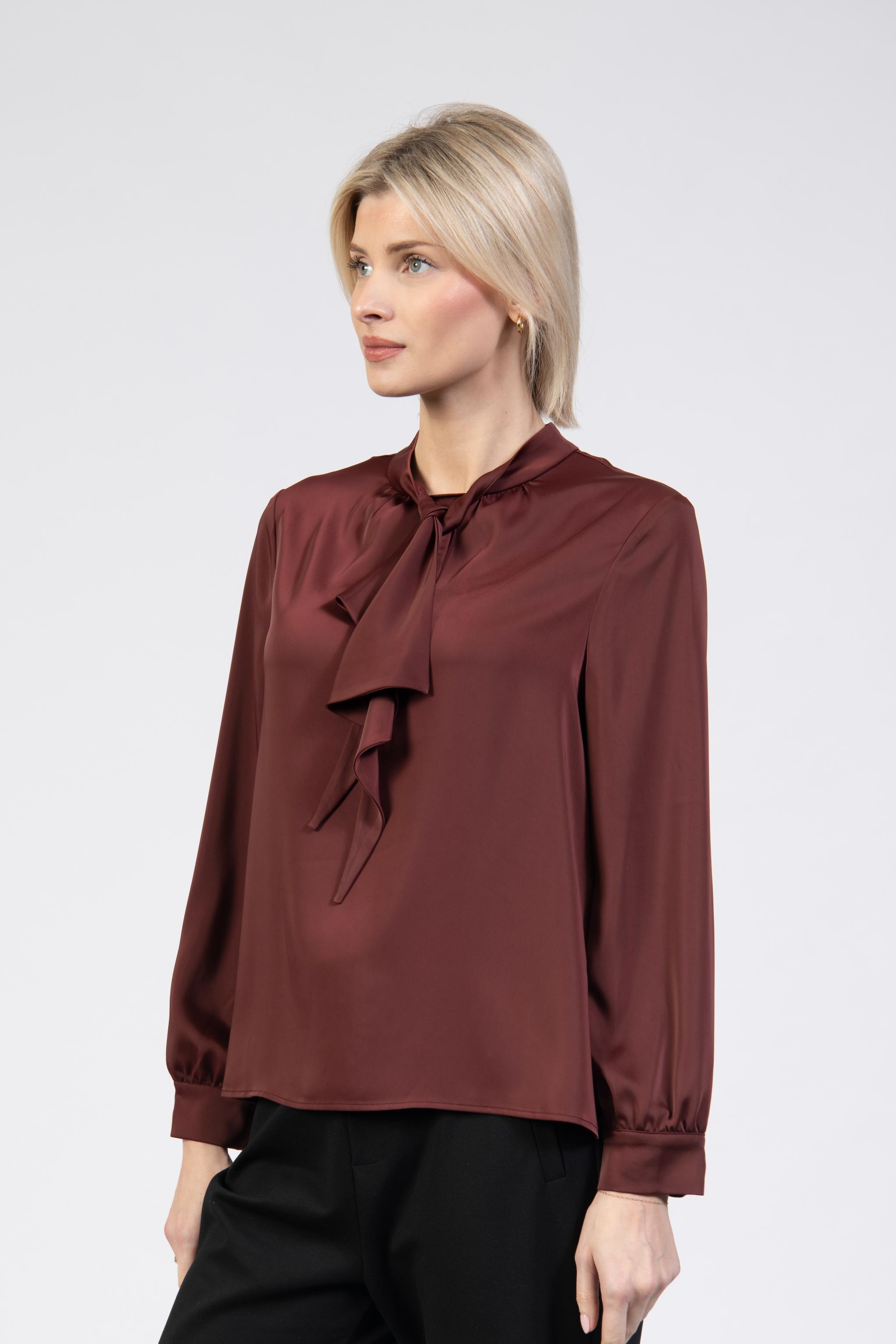 Satin-look blouse, pussybow, cherry, long sleeve