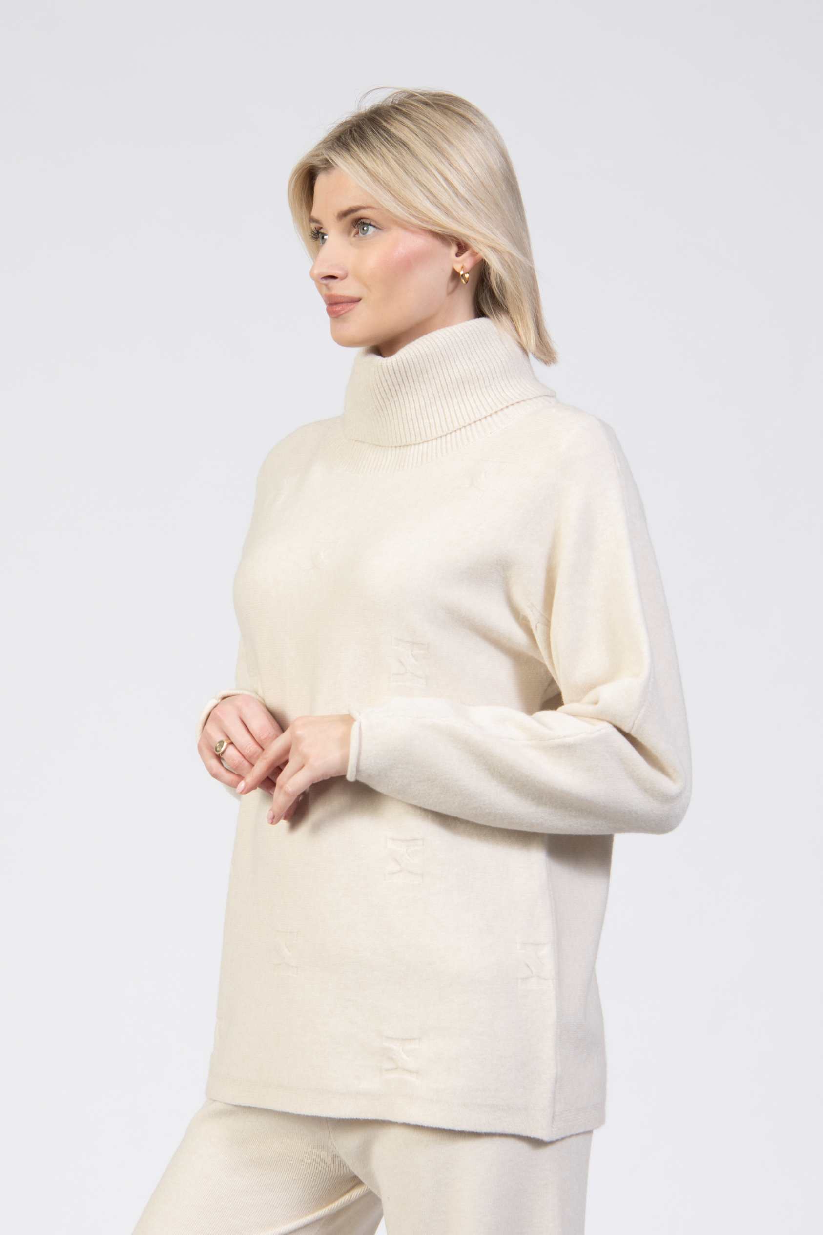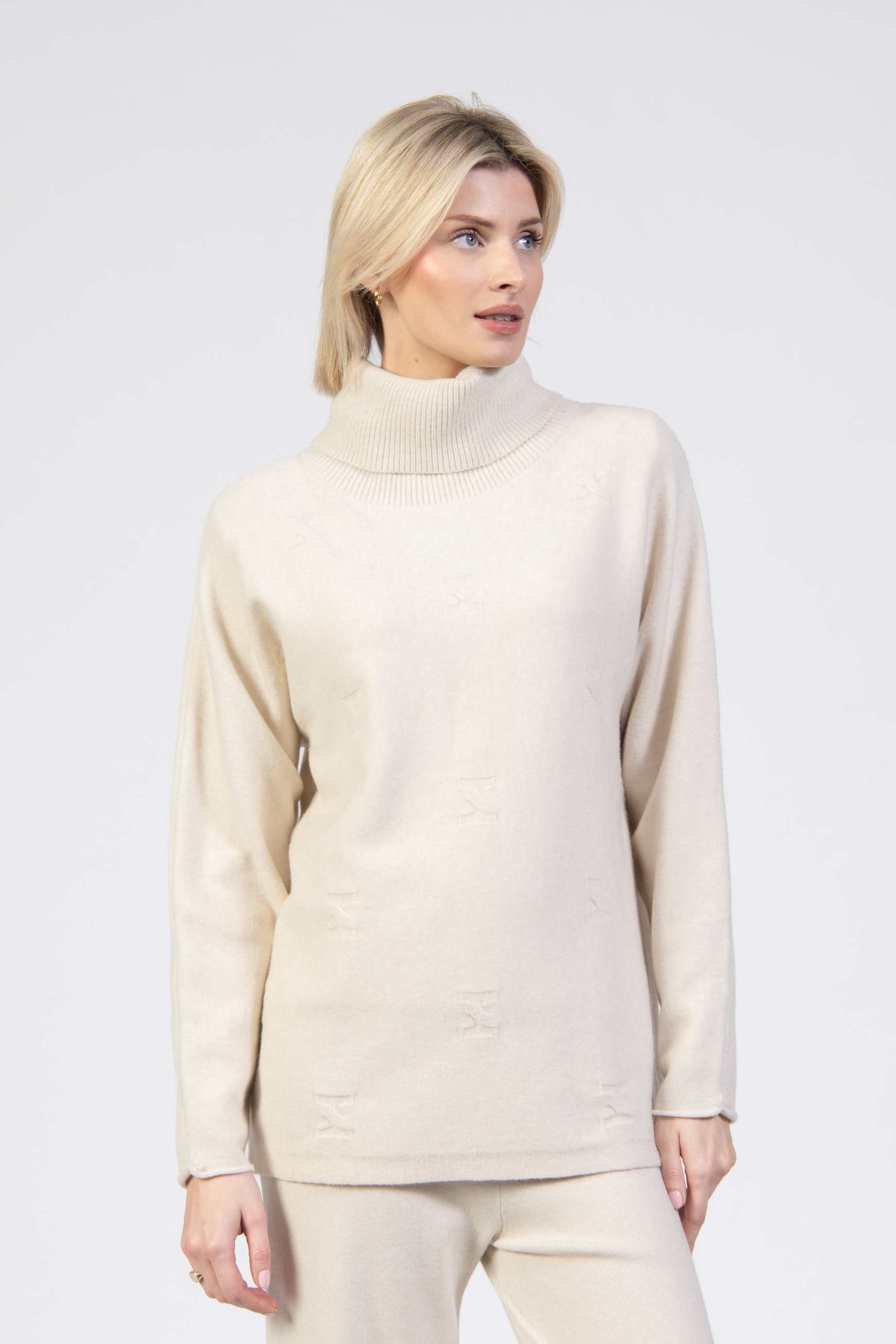 Turtle neck sweater, placed diamond pattern