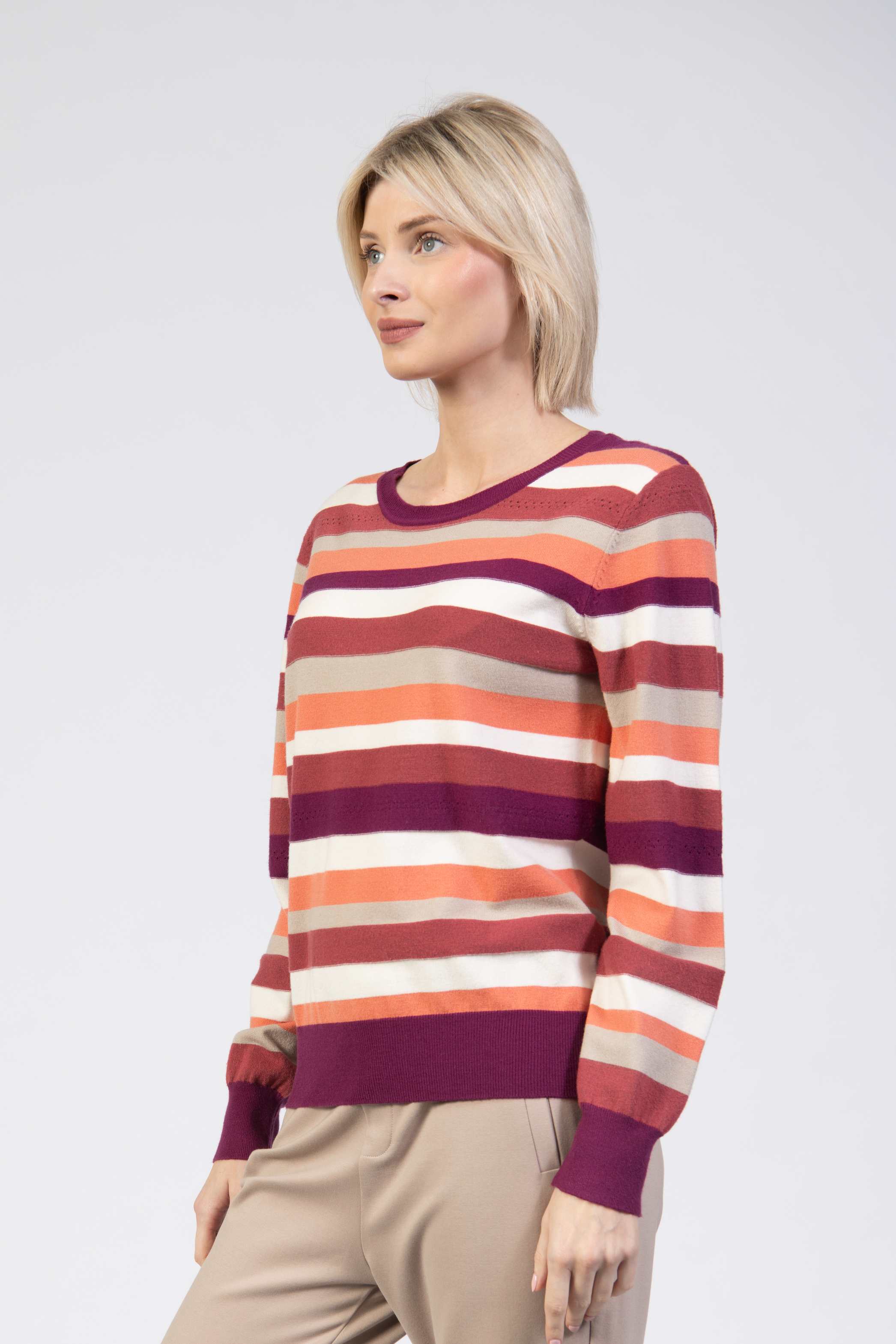 Stripe sweater, textured, round neck, long sleeve, cuffed