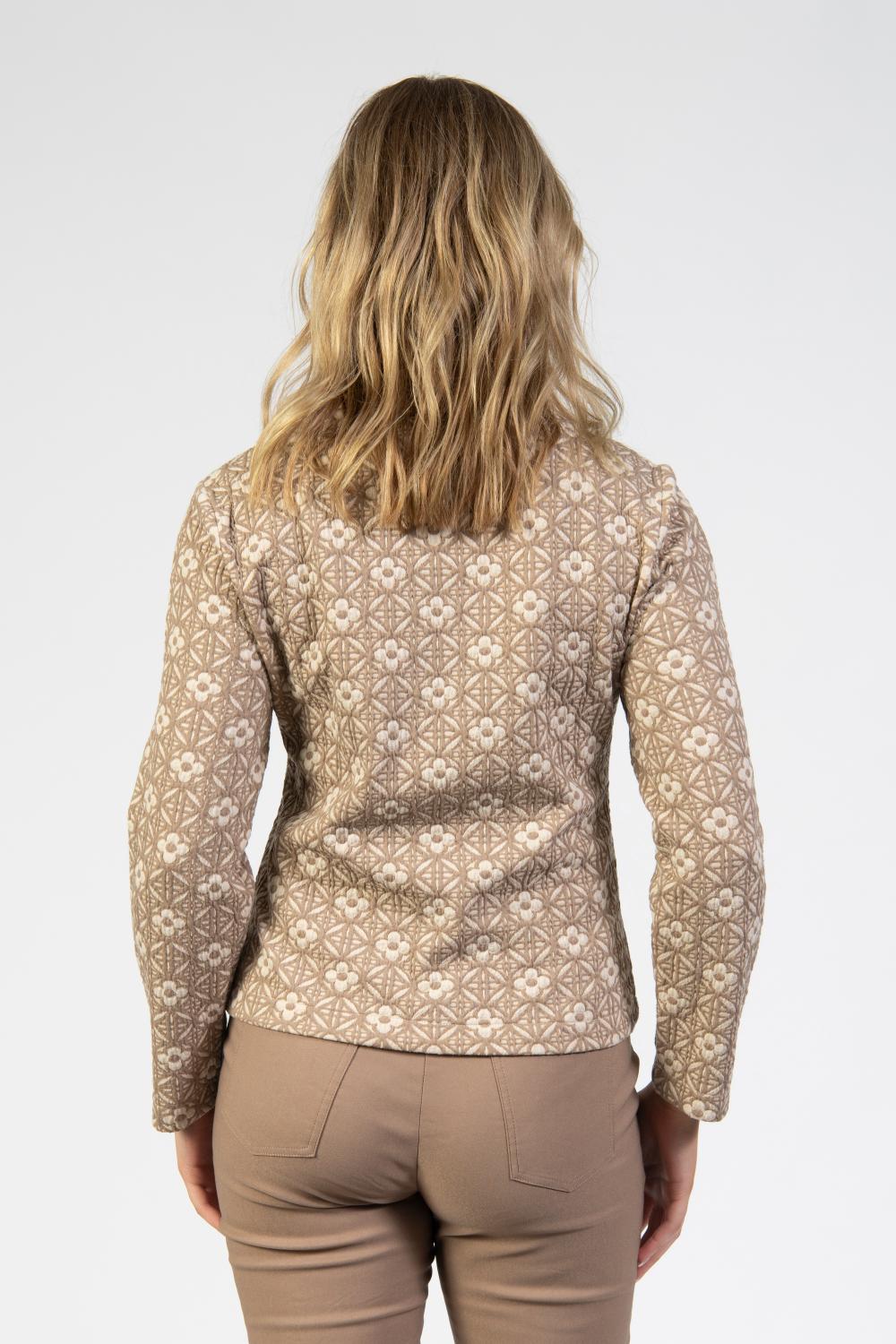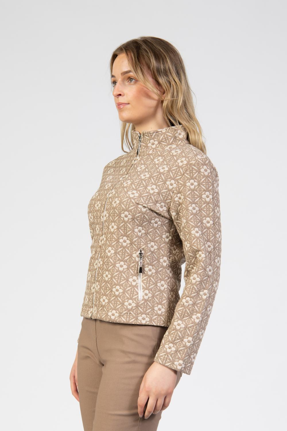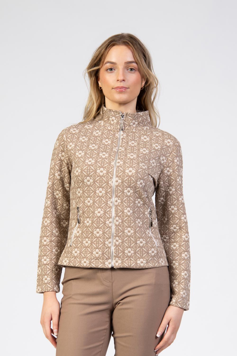 Zip-through top, textured jacquard with floral geo pattern, full zip, long sleeve, slim fit, 2 front pockets