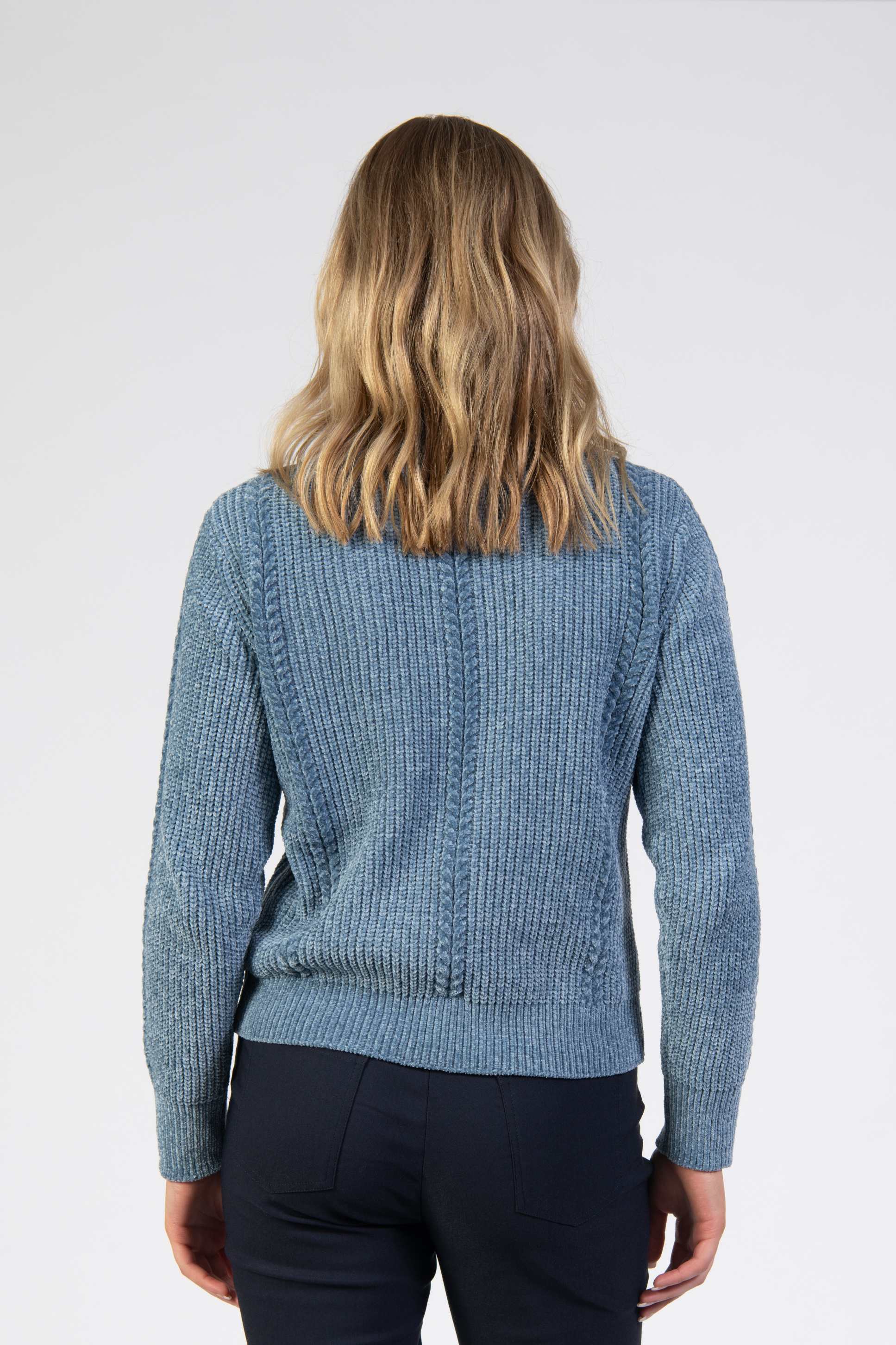 Knit jumper, chenille fabric, plain body, high turtle neck, long sleeve, regular fit, 3 front braided knit details