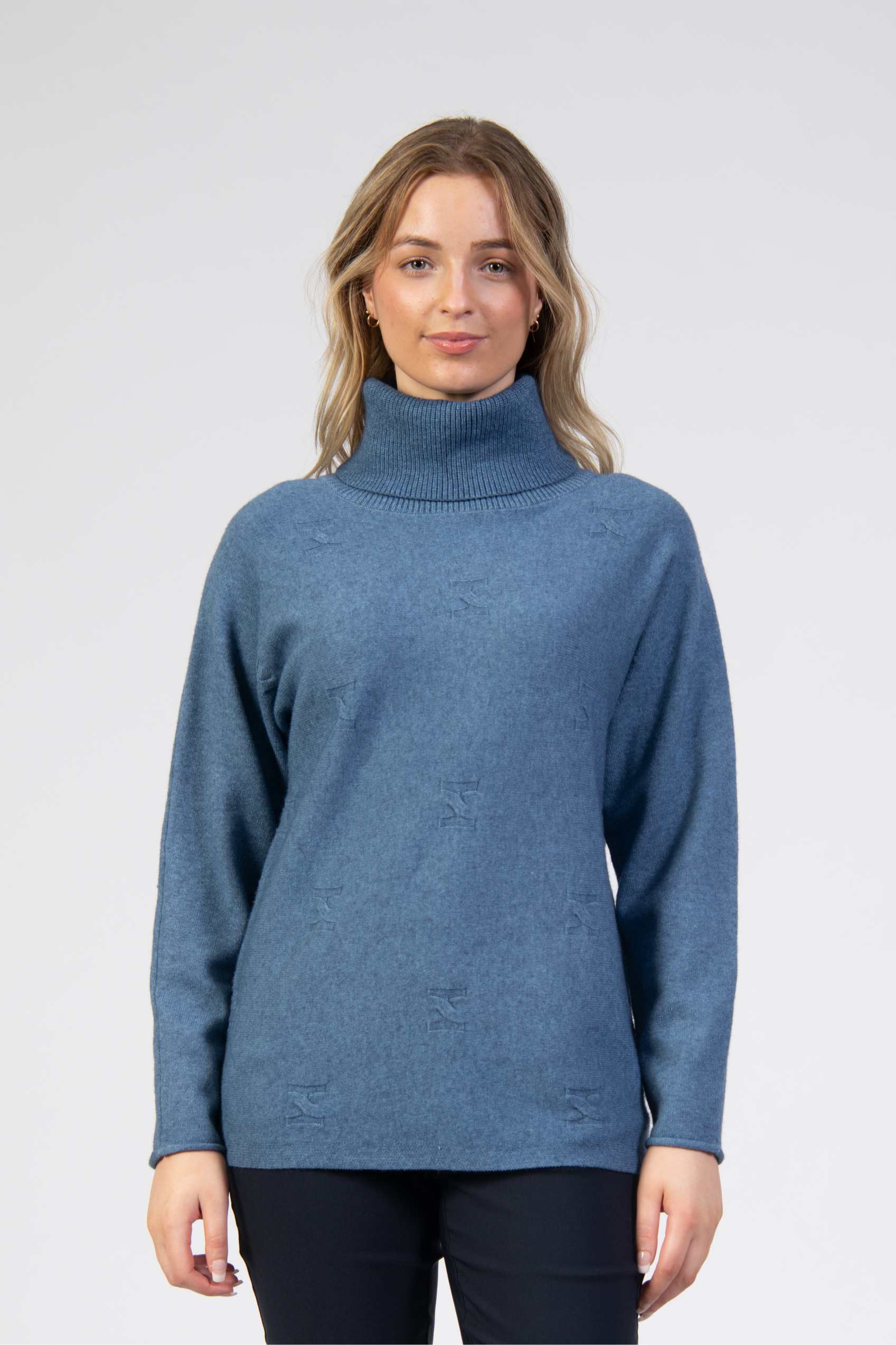 Knit jumper, plain fabric, front with twisted knit details, turtle neck, long sleeve, regular fit