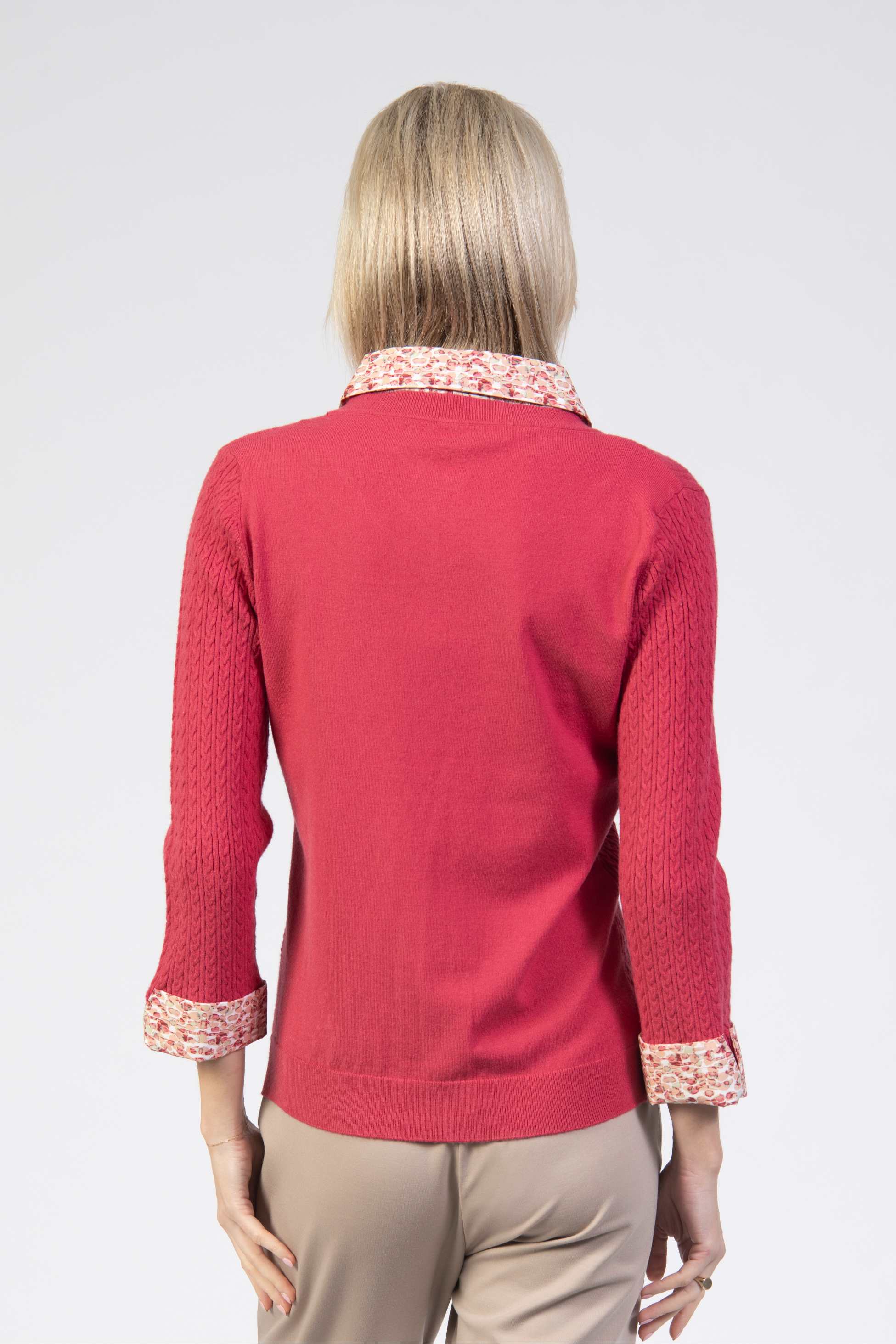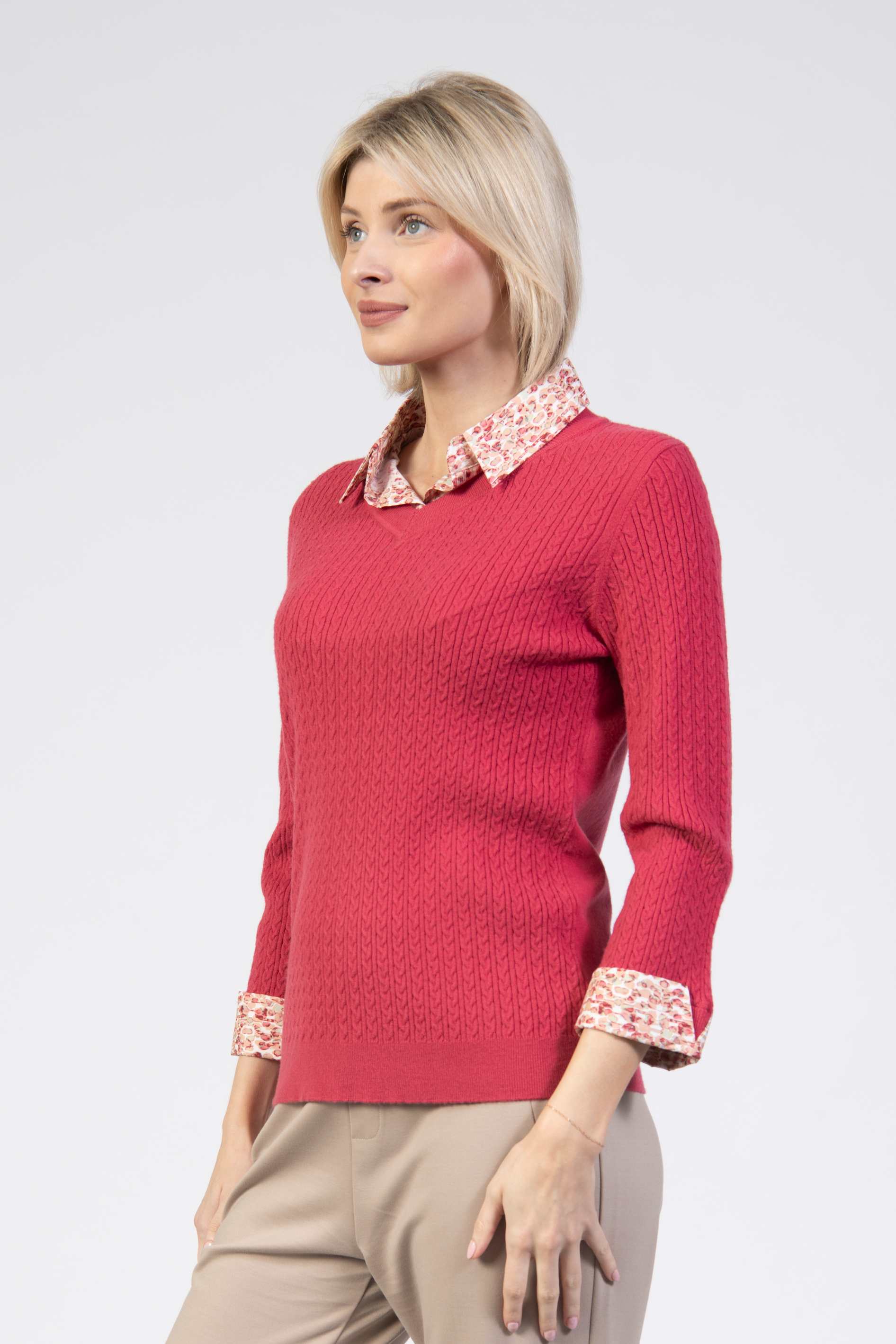 Cable knit with matching floral shirt, ¾ sleeve, regular fit, shirt collar and cuffs