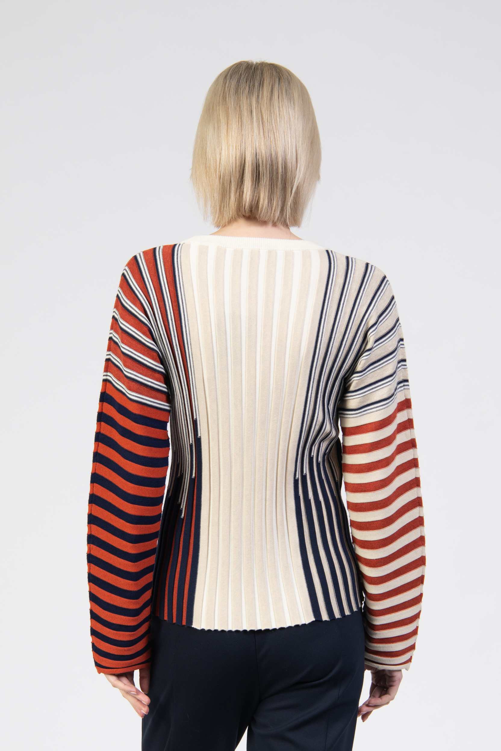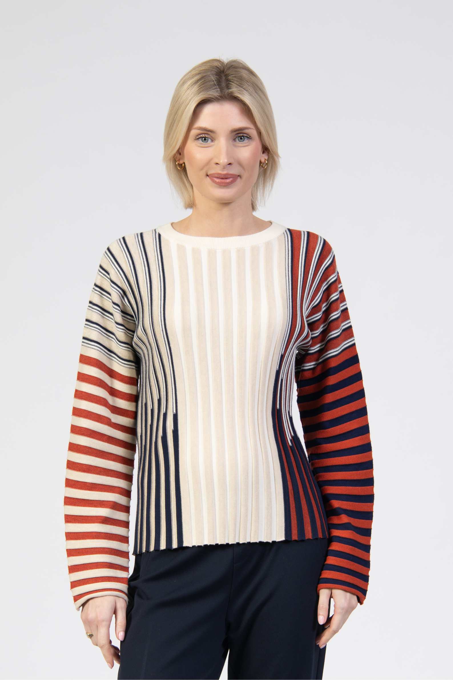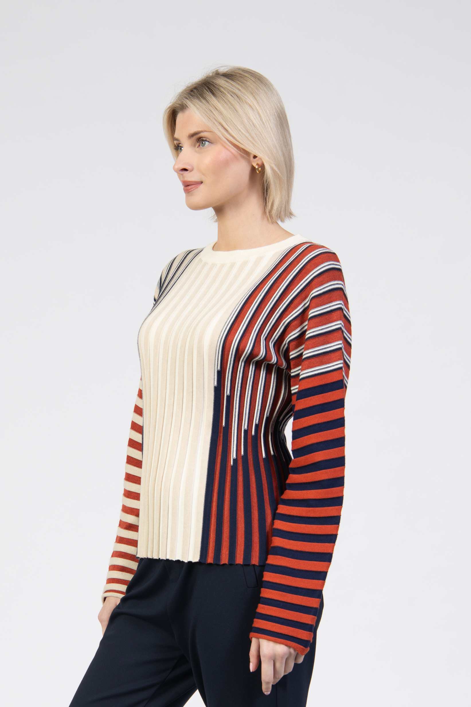 Knit jumper, ribbed colourblock knit, round neck, long sleeve, regular fit, soft texture