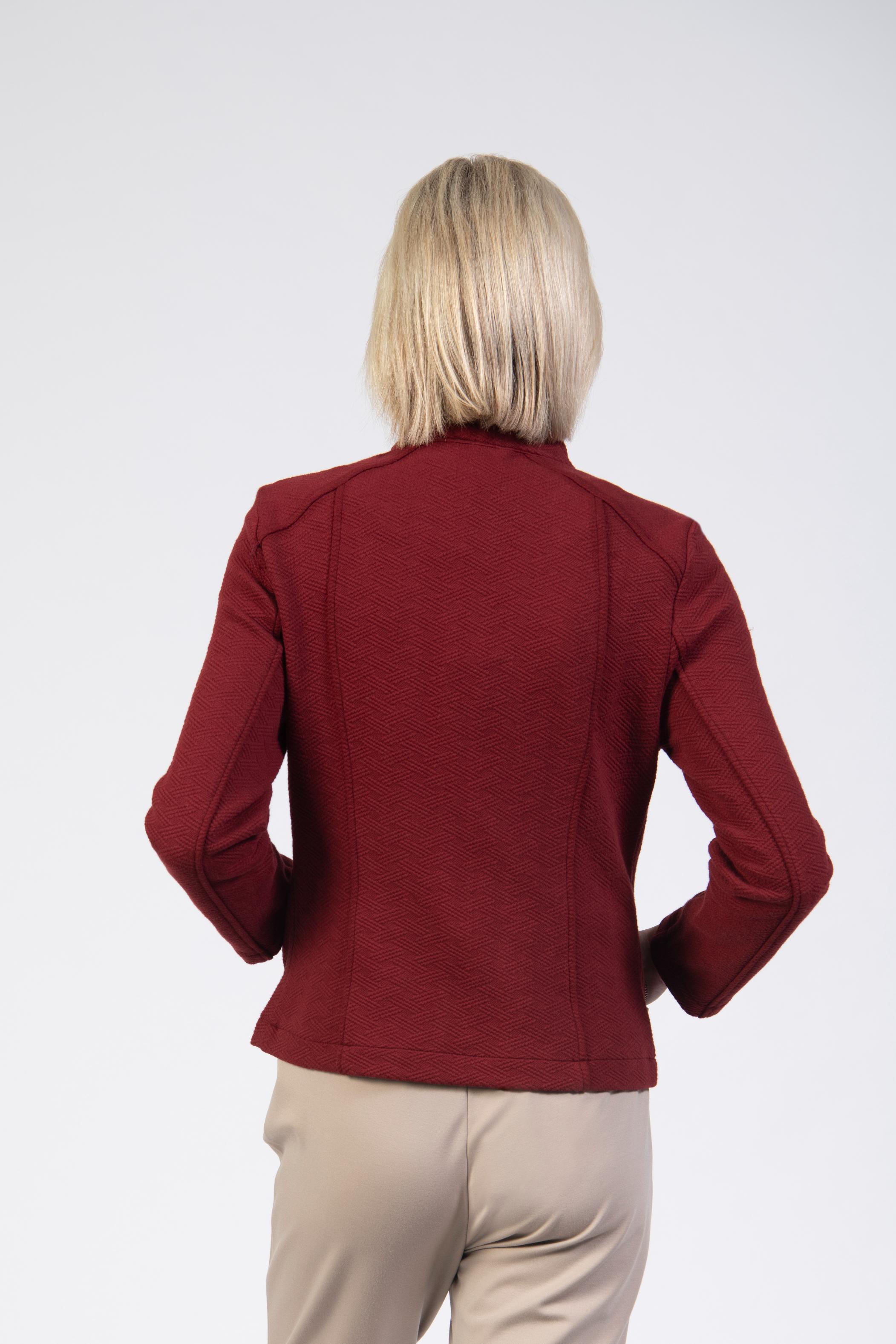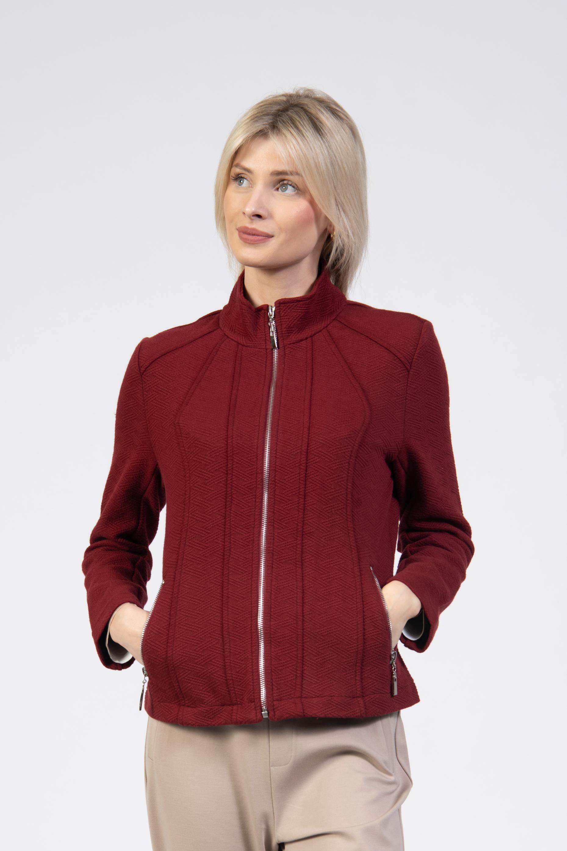 Jacquard jacket, solid colour with zigzag texture, high neck, long sleeve, slim fit, full silver zip, front seams, side pockets