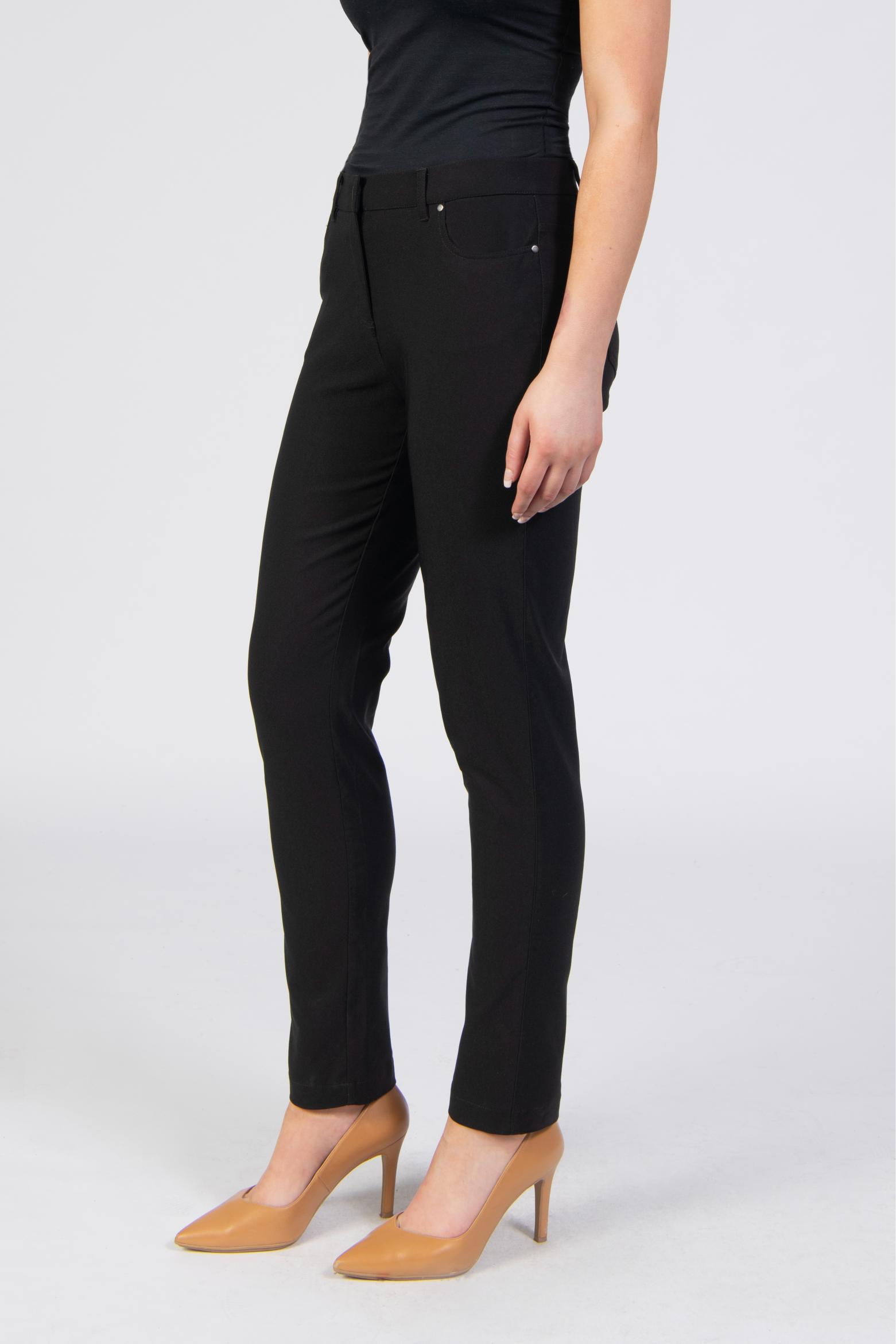 Trousers, fleece-lined, slim fit, mid waist, stretchy fabric, functional front zip, front and back pockets