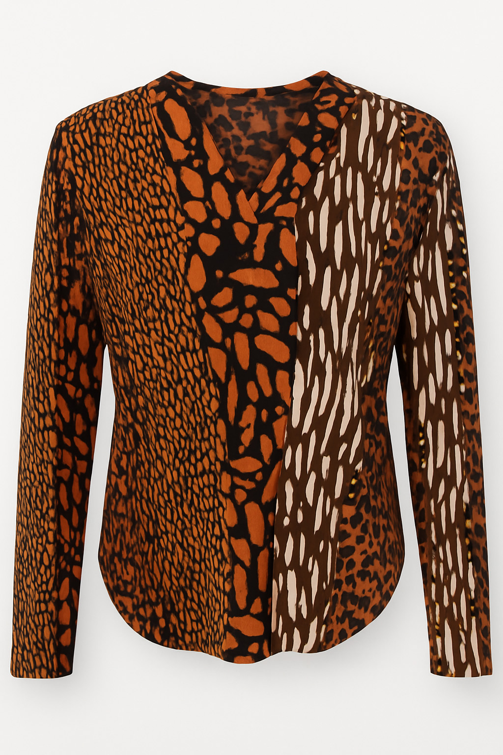 Printed top, super soft handle, mixed animal and stripe print, V-notch neckline, long sleeve, relaxed fit