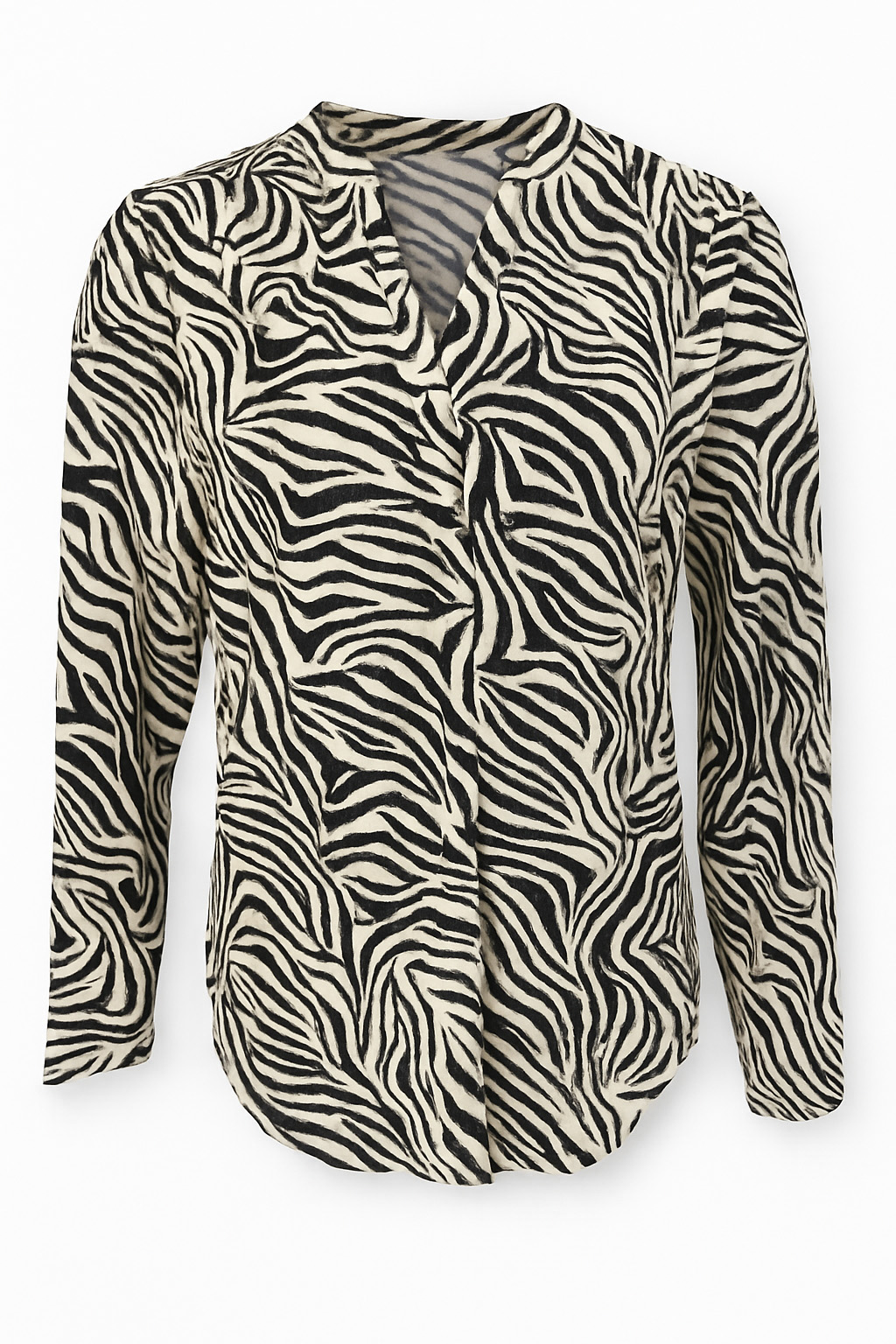 Printed top, super soft handle, small zebra print, V-notch neckline, long sleeve, relaxed fit